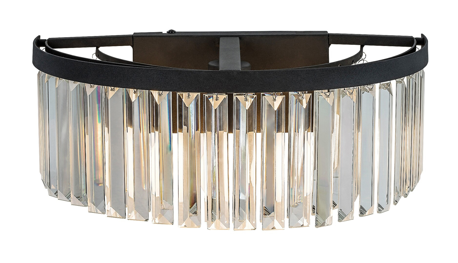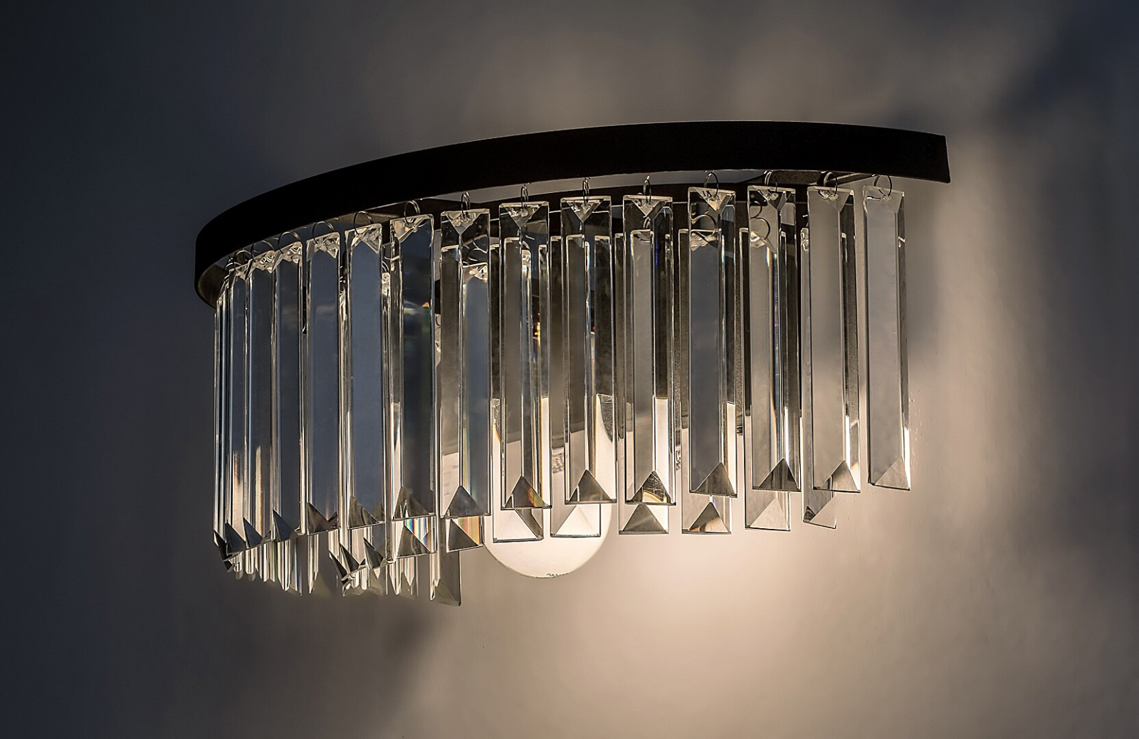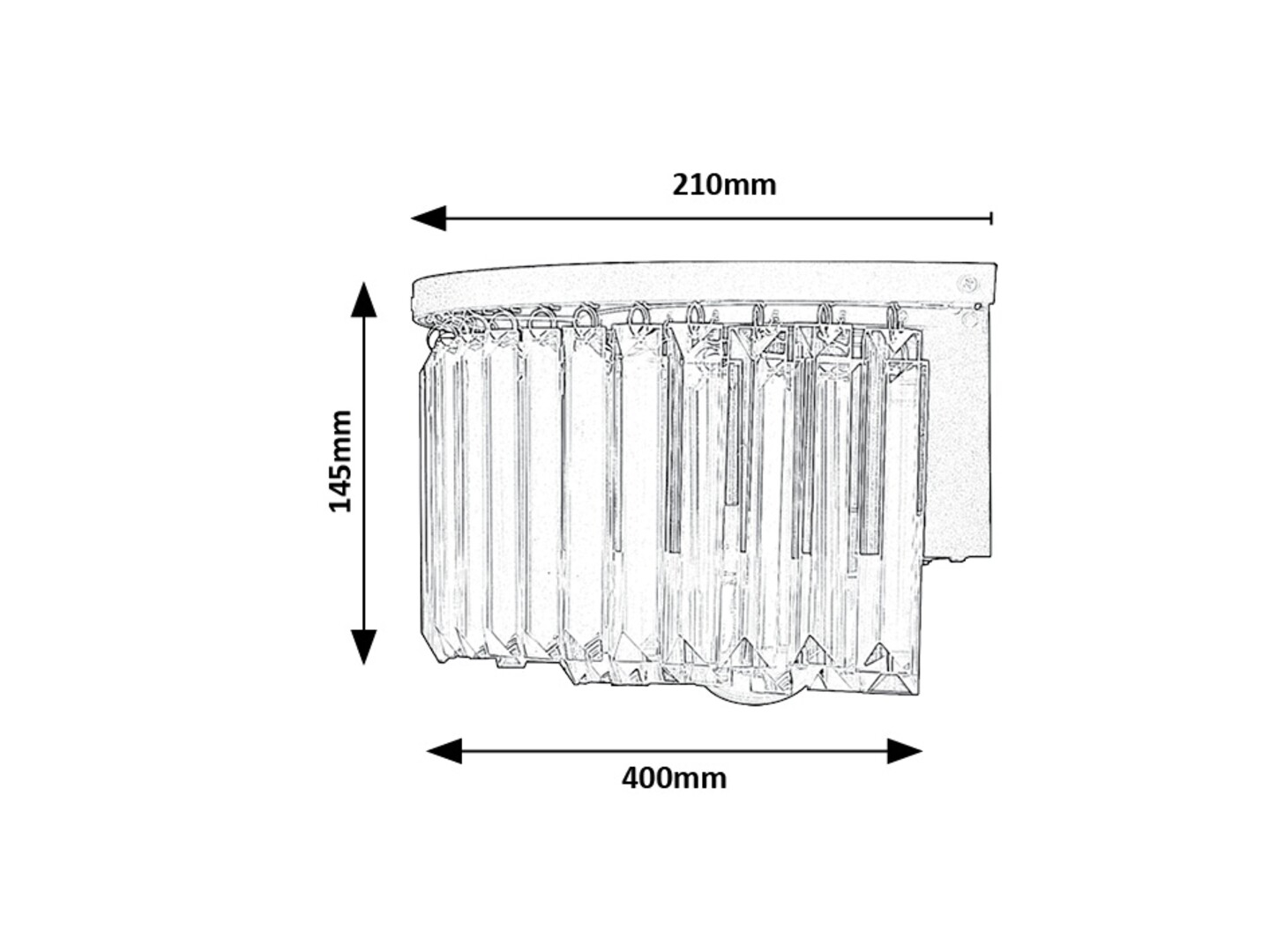 Lampa de perete elegant Eloisa, în stil clasic, este recomandat în primul rând pentru camera de zi sau dormitor. Corpul din metal negru al lămpii este completat de pandantive din sticlă transparentă care acoperă sursa de lumină ca o perdea semicirculară, conferind acestui model un aspect de candelabru. Eloisa poate fi montată pe perete cu ajutorul unei baze decorative negre, întreaga lampă formând un semicerc. Lampa de perete poate fi folosită cu o singură sursă de lumină cu o putere de până la 25 W, tip soclu E27. În funcție de gustul Dvs. și de locul de instalare, puteți alege pentru acest model strălucitor un bec cu lumină albă caldă sau naturală. Dacă îl instalați în dormitor, se recomandă utilizarea unei surse de lumină albă caldă care facilitează crearea unei atmosfere intime și familiale, este relaxantă pentru ochi și ușurează destinderea înainte de culcare. Dimensiunile lămpii de perete Eloisa sunt următoarele: lățime 400 mm, înălțime 145 mm, distanța față de perete 210 mm. Acest model se livrează fără sursă de lumină.