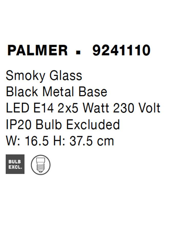 Smoky Glass Black Metal Base LED E14 2x5 Watt 230 Volt IP20 Bulb Excluded D: 11.5 W: 16.5 H: 37.5 cm