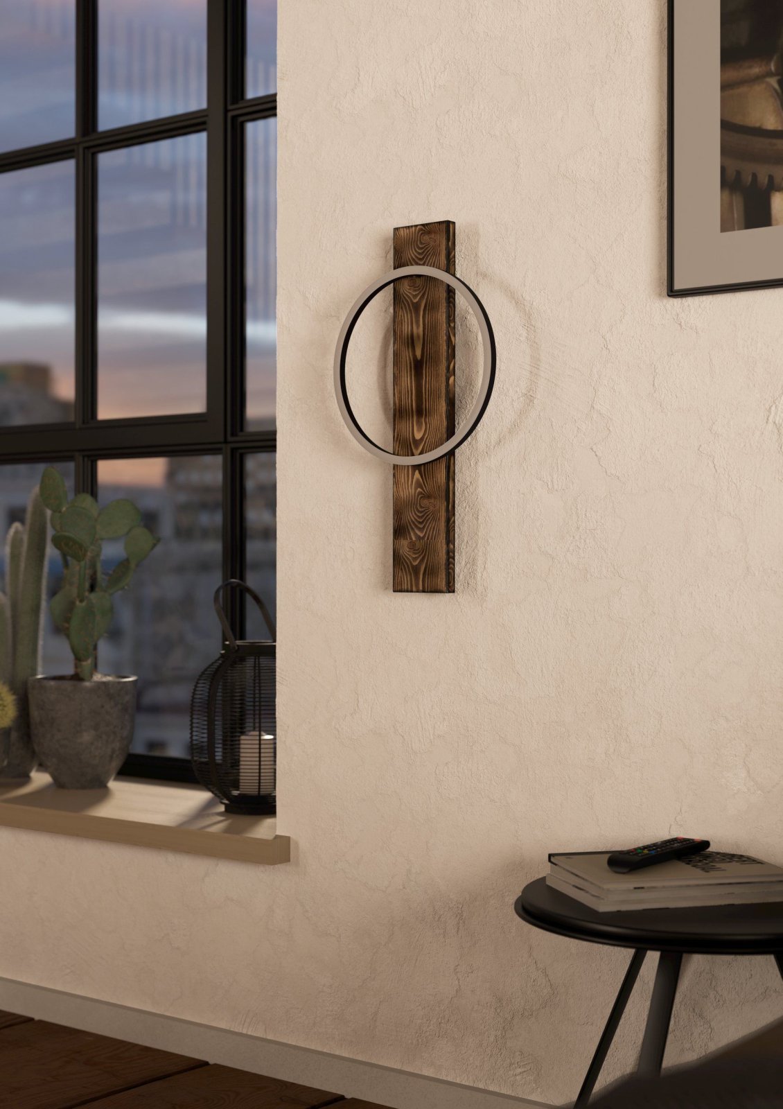 Aplica EGLO Boyal 99353 LED 1X12W 3000K 1700lm 220-240V,50/60Hz L 300mm x H 560mm otel/lemn negru/maro rustic plastic alb IP20