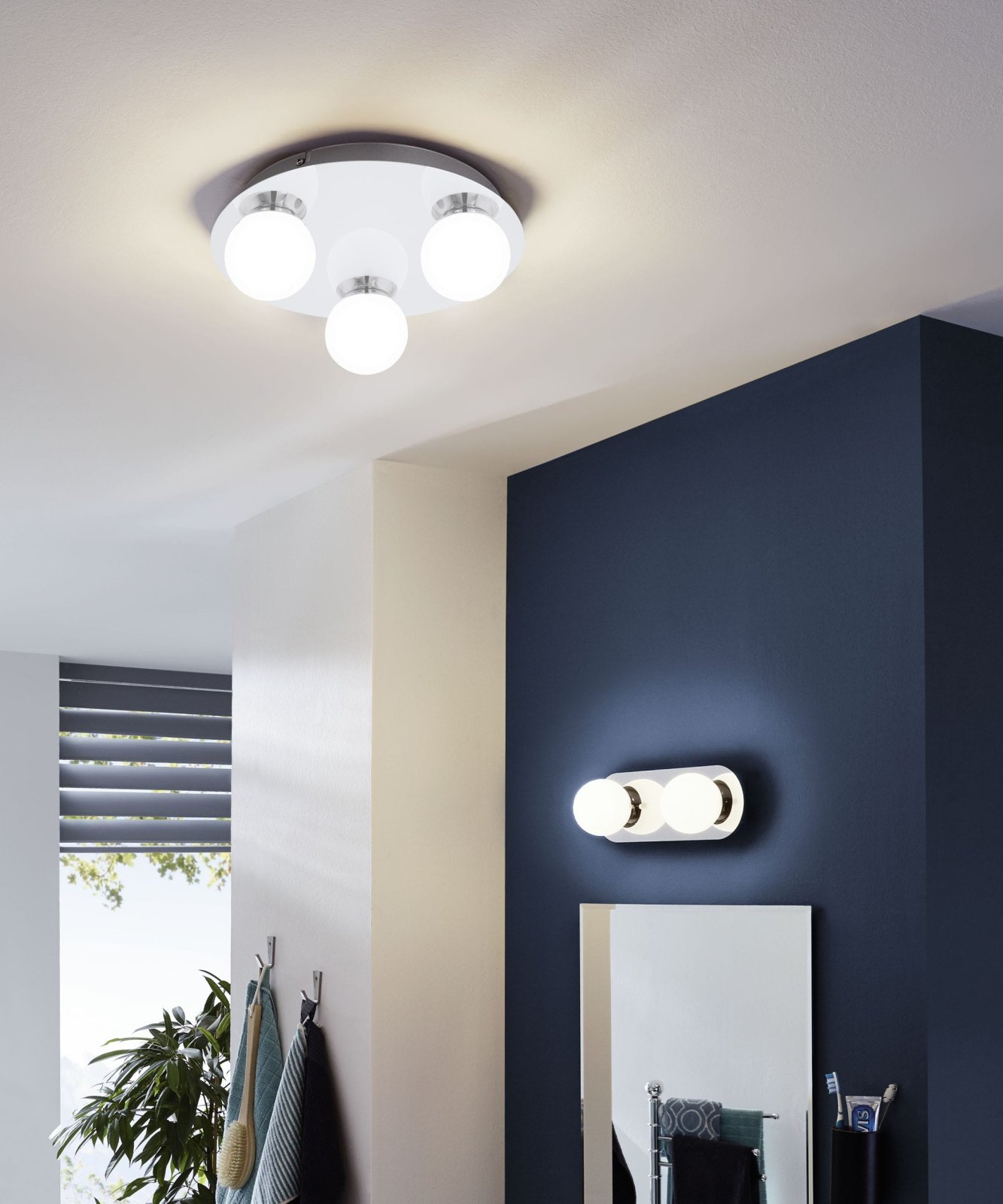 Aplica/Plafoniera EGLO Mosiano 94627 LED 2X3,3W 3000K 680lm 220-240V,50/60Hz L 300mm x l 100mm x H 110mm otel inoxidabil crom sticla mat/opal alba IP44