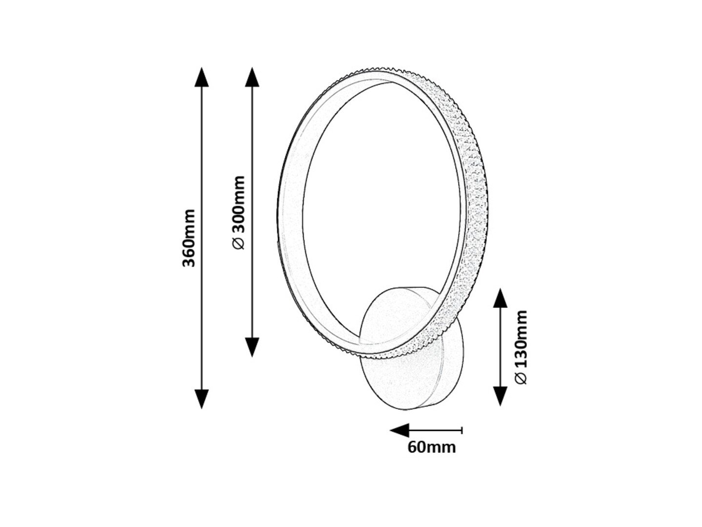 Lampa de perete cu un aspect suav Grete, în stil modern, este recomandat în primul rând pentru camera de zi sau dormitor. Corpul din metal negru este completat de un abajur acrilic alb, iar lampa poate fi fixată pe perete cu ajutorul unei baze decorative rotunde mici. Esența lămpii, marcată de un design curat, este un element în formă de inel care este strâns legat de baza decorativă și poziționat paralel cu aceasta. Grete are o sursă de lumină LED încorporată aparținând clasei energetice G, cu o putere de 15 W, o luminozitate de 1150 de lumeni cu abajur, 1850 de lumeni fără abajur, precum și cu o durată de viață de 20.000 ore. Sursa de lumină cu temperatura de culoare de 3000 K emite lumină albă caldă, care ajută la crearea unei atmosfere intime, primitoare și relaxează ochii. Dimensiunile lămpii de perete Grete un sunt următoarele: înălțime 360 mm, diametru 300 mm, distanța față de perete 60 mm, diametru de instalare 130 mm.