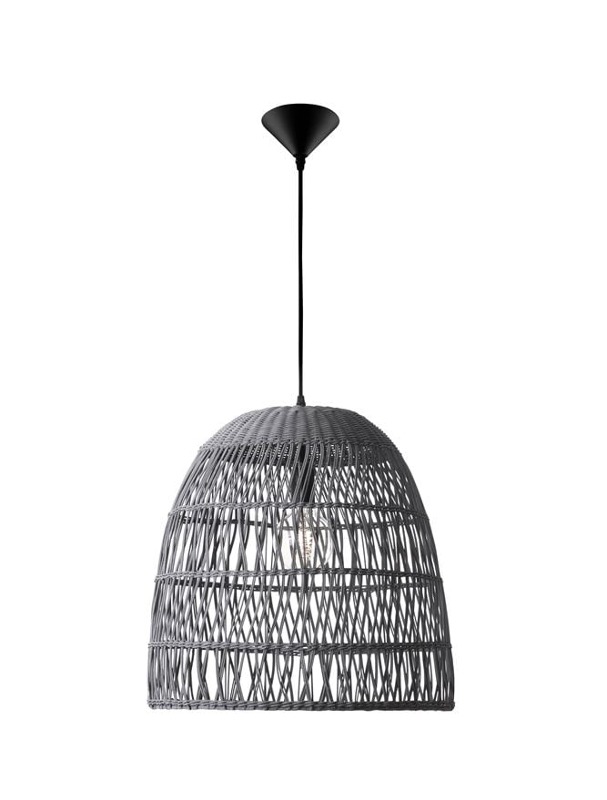 Gray Rattan,Black Fabric Wire & Base,LED E27 1x12 Watt 230 Volt,IP20 Bulb Excluded ,D: 46.5 H1: 46 H2: 250 cm Adjustable height
