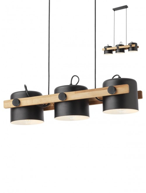 SMARTER Lustra SMARTER POOH 01-2403 E27 3x42W Metal Negru mat/Lemn Fag Natur IP20