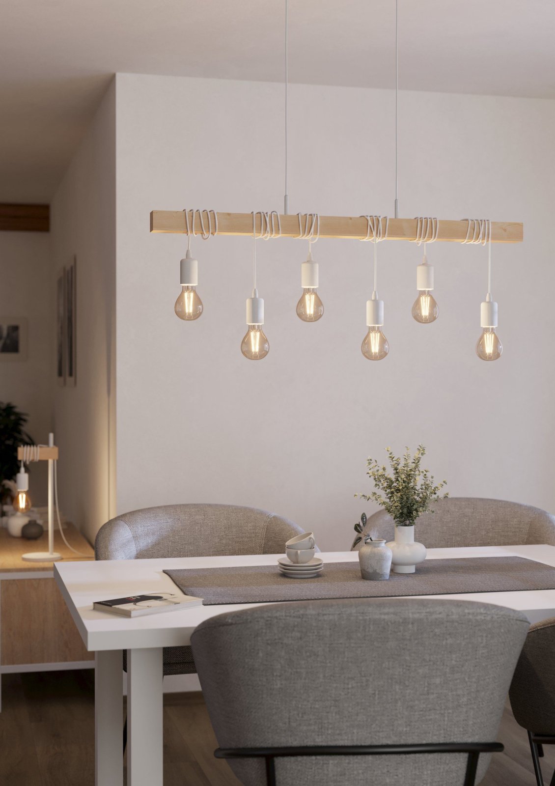 Lustra EGLO Townshend 43705 E27 6X60W 220-240V,50/60Hz L 1000mm x l 100mm x H 1100mm otel alb lemn maro IP20