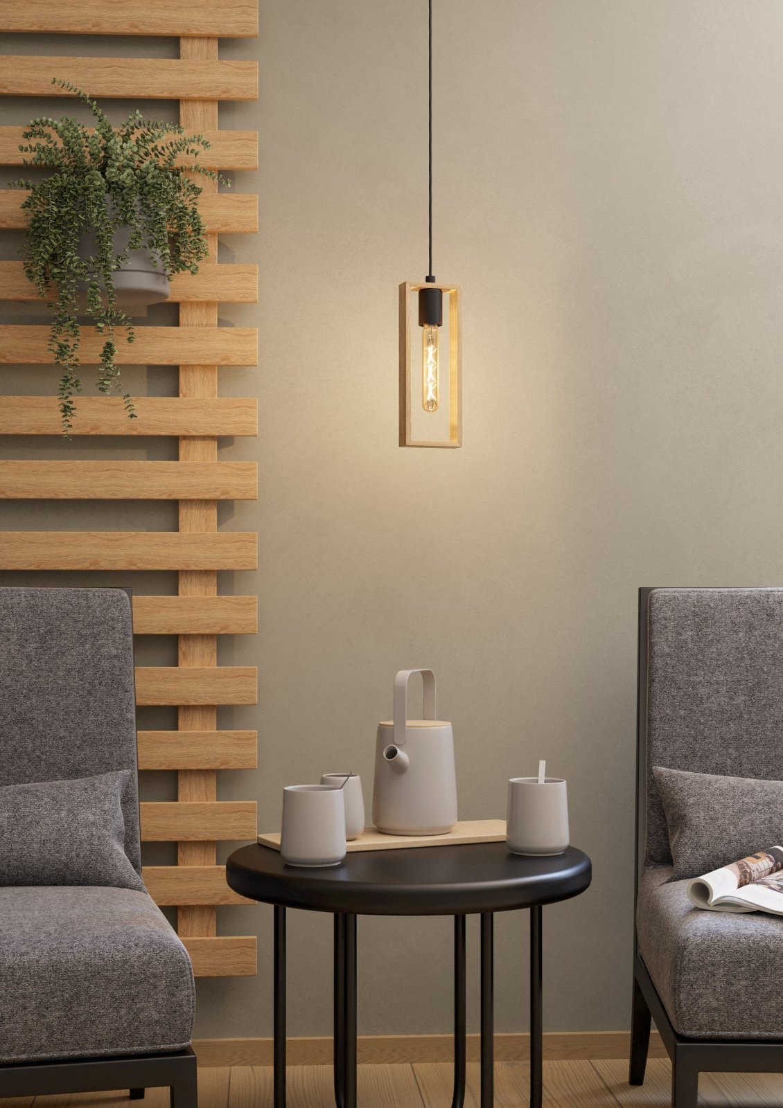 Pendul EGLO Littleton 44051 E27 1X40W 220-240V,50/60Hz L 110mm x l 100mm x H 1100mm otel negru lemn maro IP20