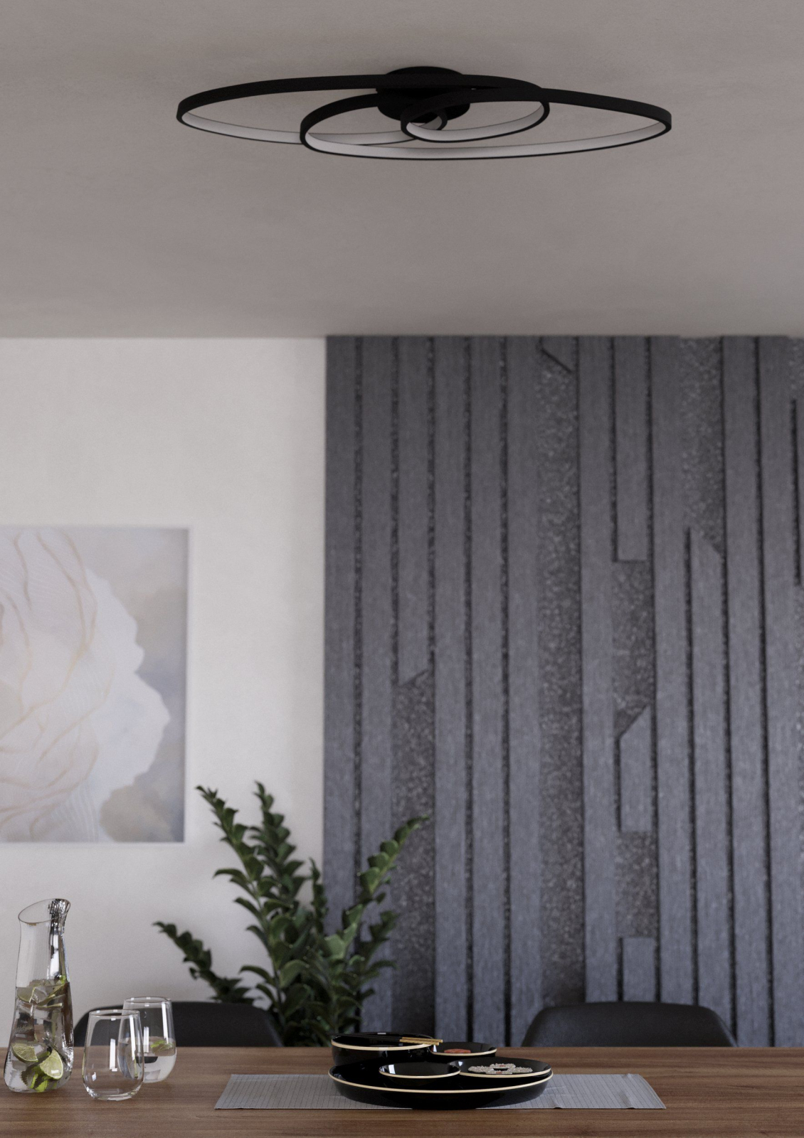 Plafoniera EGLO Gianella 900947 LED 38W 3000K 4400lm 220-240V,50/60Hz L 880mm x l 300mm x H 80mm aluminiu/otel negru plastic alb IP20