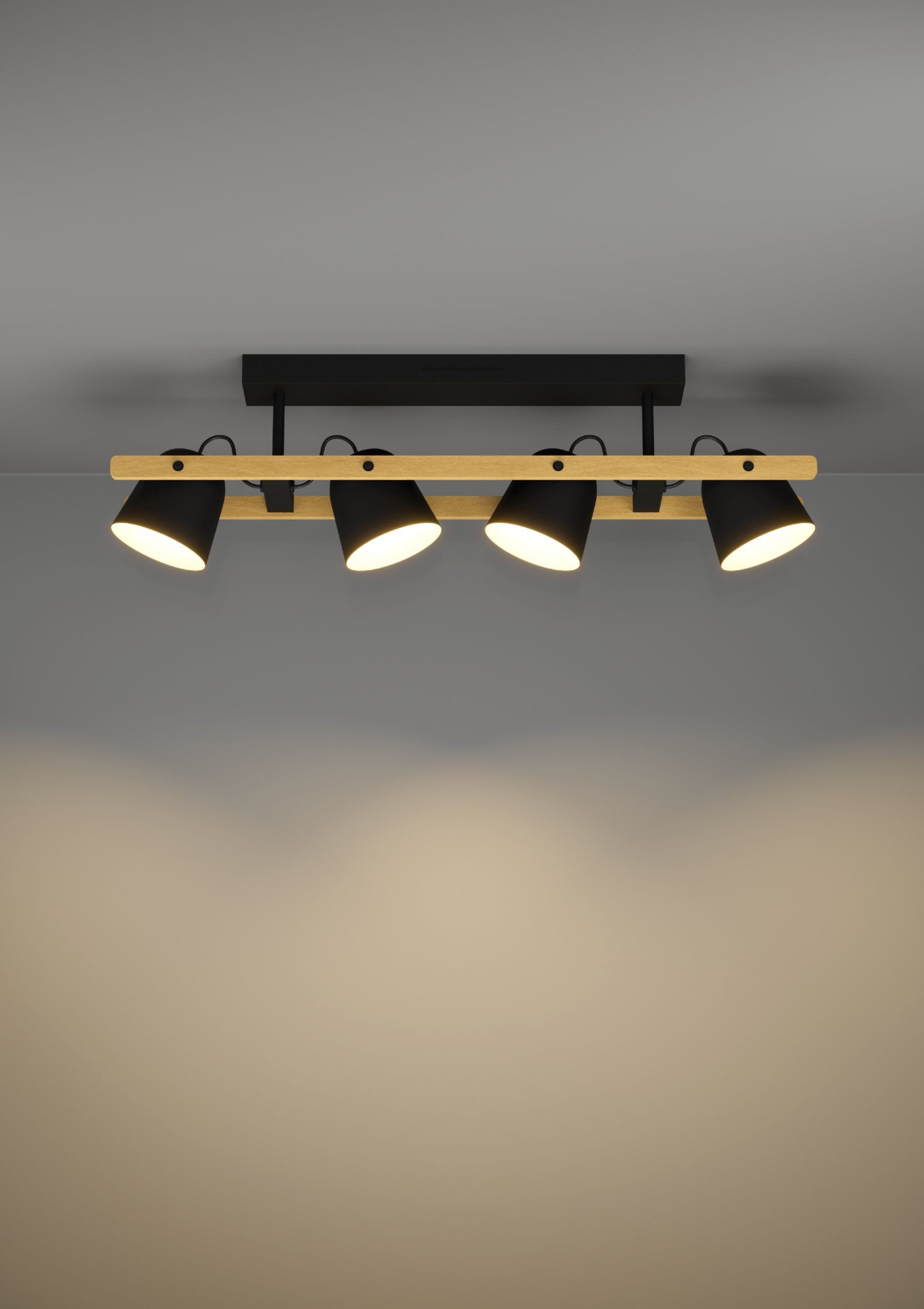 EGLO Plafoniera EGLO Hornwood-Z 900882 LED 4X3,7W 2700-6500K 2200lm 220-240V,50/60Hz L 780mm x l 140mm x H 160mm otel/lemn negru/maro IP20