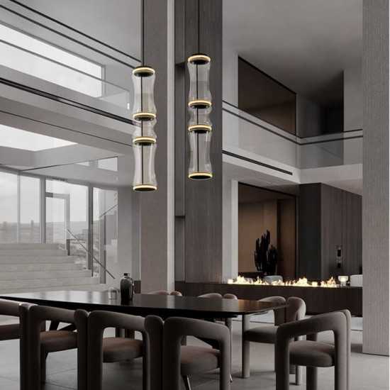 Suspensie Nova Luce Anapnoe, negru, touchless, LED, 37W, 888 lumeni, alb cald 3000K, H.113 cm, 9695284