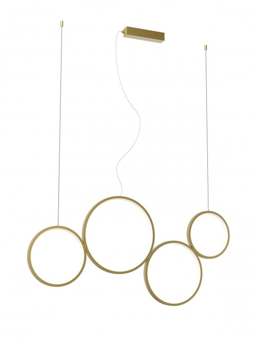 Suspensie pentru interior, echipată cu LED-uri SMD, cu posibilitate de selectare a temperaturii de culoare a luminii, structură din metal și aluminiu finisată auriu mat, dispersor din PVC alb