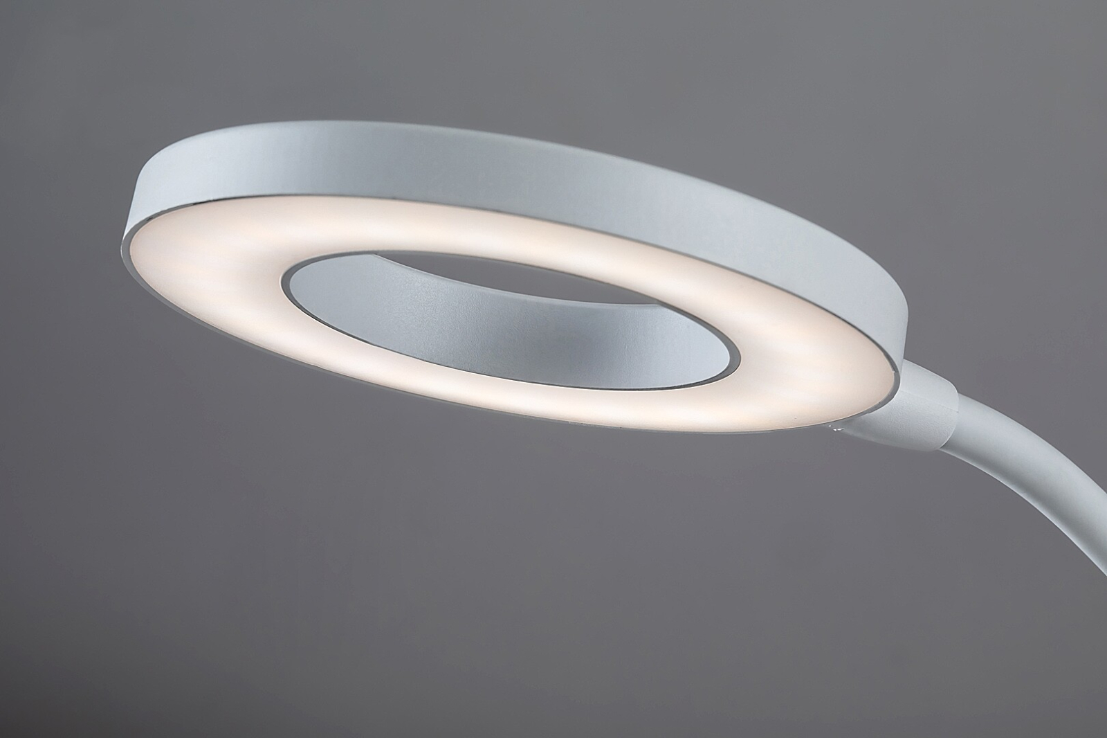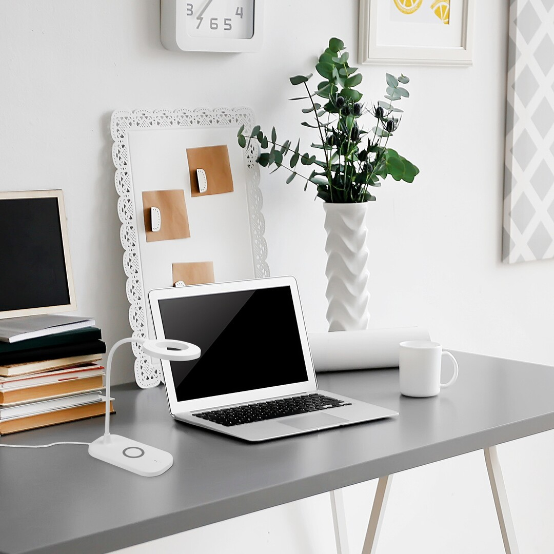 Cu numeroasele sale funcții suplimentare, lampa de masă modernă Hardin va fi un însoțitor indispensabil în oficiu sau la orice birou. Lampa inteligentă în întregime din plastic este realizată în alb cu abajur alb, capul lămpii fiind în formă de gogoașă, iar baza decorativă dreptunghiulară are colțurile rotunjite. Hardin are o sursă de lumină LED încorporată aparținând clasei energetice G, cu o putere de 5 W, o luminozitate de 210 de lumeni cu abajur, 720 de lumeni fără abajur și cu o durată de viață de 20.000 ore. Temperatura de culoare a lămpii poate fi modificată între 2700 și 6000 K, adică putem seta lumină albă caldă, naturală sau rece. Aceasta din urmă este deosebit de potrivită pentru lucru și învățare. În plus, lampa este dimabilă, adică luminozitatea sa poate fi de asemenea modificată. Temperatura de culoare și luminozitatea pot fi reglate cu ajutorul comutatorului tactil amplasat pe bază. Hardin are un încărcător wireless și poate fi încărcat prin cablu USB. Dimensiunile lămpii masă sunt următoarele: înălțime 290 mm, diametru 100 mm, adâncime de instalare 165 mm.
