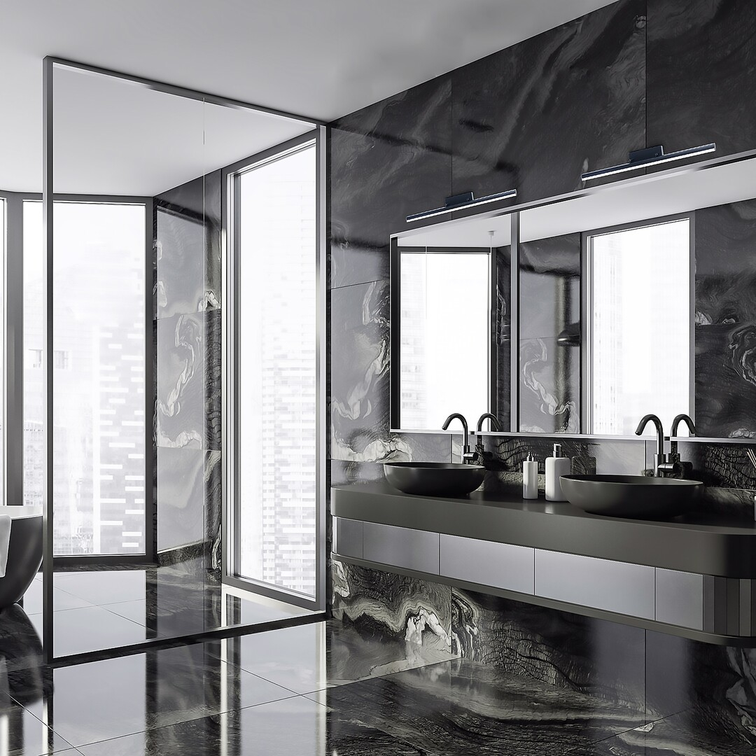 Aplica de perete modernă Evan pentru baie, este o alegere excelentă pentru iluminarea zonei deasupra chiuvetei. Modelul negru mat este realizat din metal și aluminiu, fiind completat de un abajur din plastic alb. Lampa dispune de o sursă de iluminat LED integrată, cu puterea de 18 W, un flux luminos de 1850 lumeni și o durată de viață de 20.000 ore. Sursa de iluminat are o temperatură de culoare de 4.000 K, radiind astfel o lumină albă, naturală. Corpul de iluminat Evan are protecție IP44, astfel că asigură protecția împotriva penetrării obiectelor de până la 1 mm în diametru și împotriva stropirii apei din orice direcție. Dimensiunile acestei lămpi de baie sunt: lățime 630 mm, înălțime 75 mm, adâncime 100 mm. Pentru acest model, oferim o garanție de 5 ani.