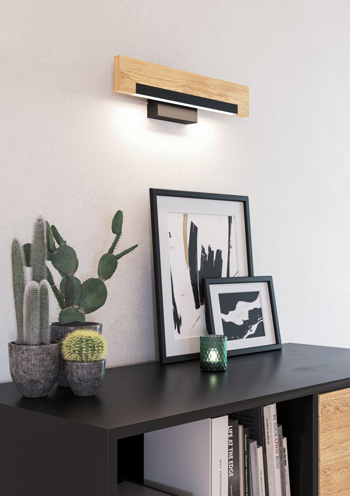 Aplica EGLO Camacho 901738 LED 1X9,6W 3000K 1050lm 220-240V,50/60Hz L 440mm x H 105mm otel/lemn negru/maro plastic alb IP20