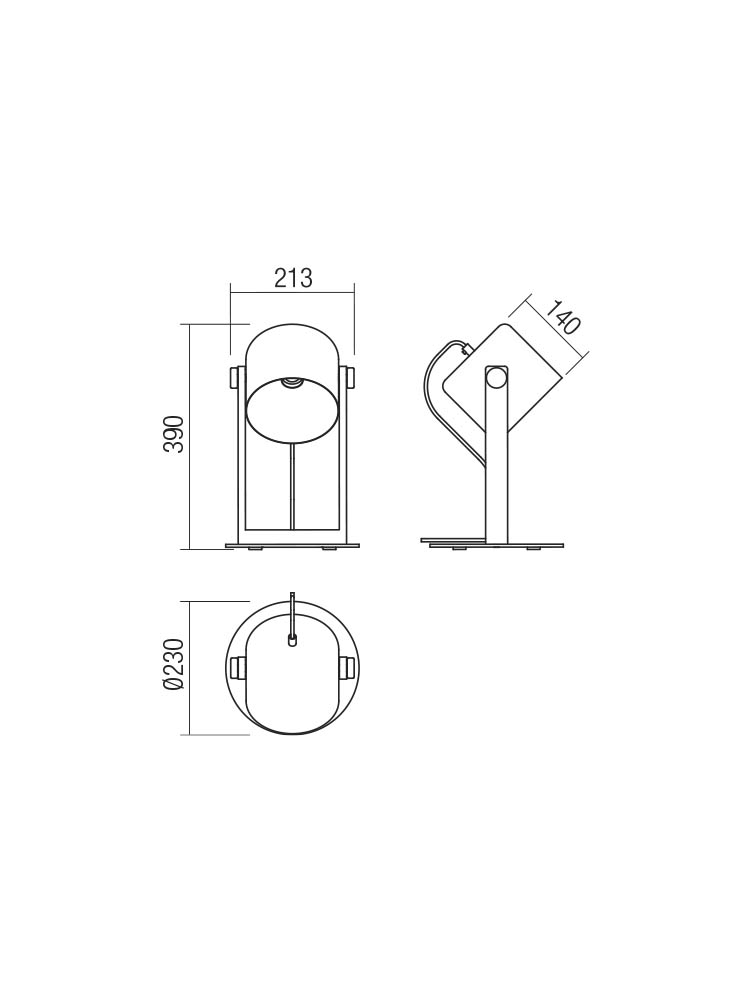 Veioză pentru interior, structură din metal vopsit negru mat și lemn de fag natur, dispersor din metal vopsit negru mat la exterior și alb la interior.