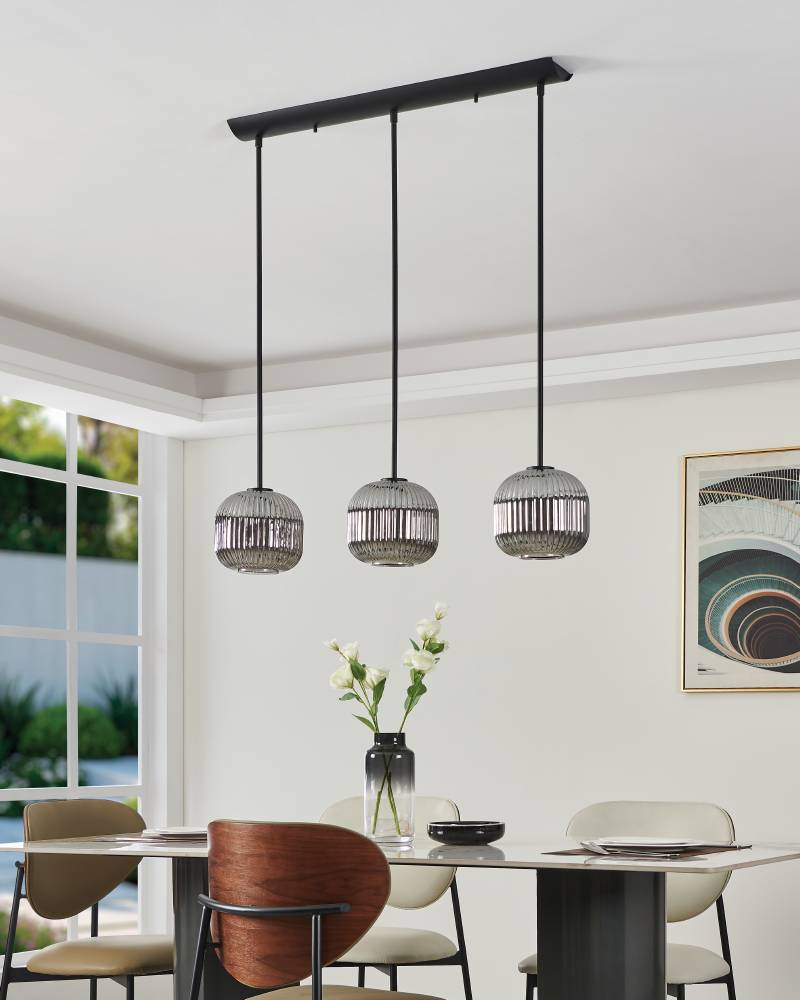 Lustra EGLO Mantunalle 1 99372 E27 3X40W 220-240V,50/60Hz L 1200mm x l 200mm x H 1100mm otel negru sticla vaporizata negru transparent IP20