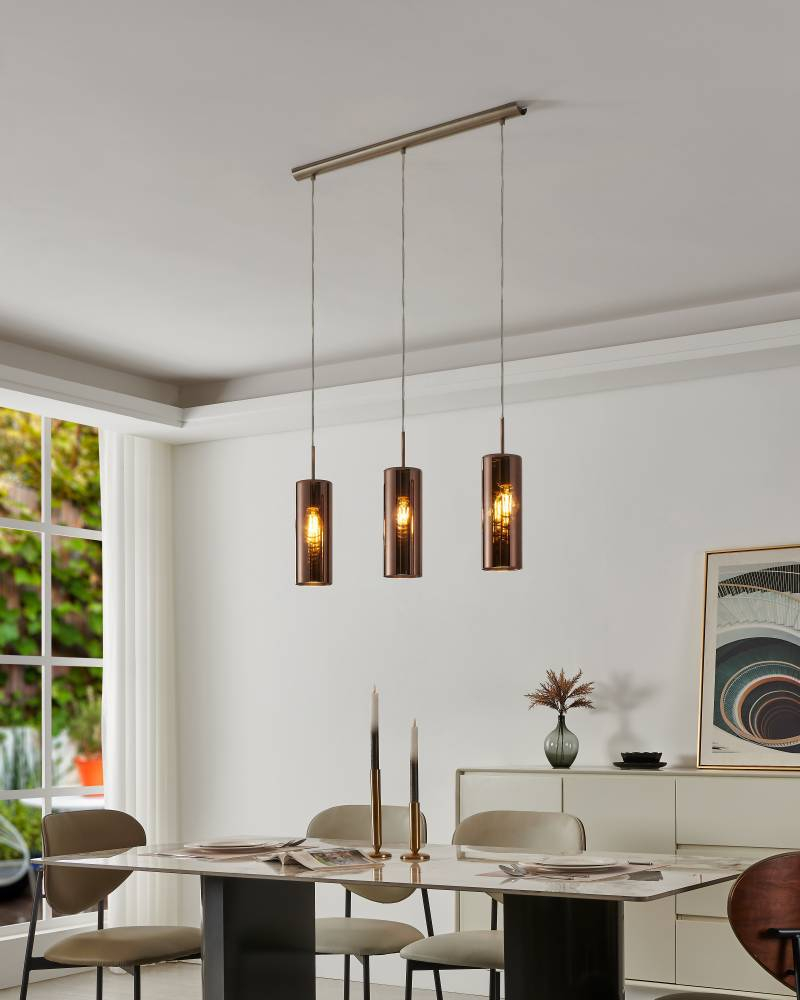 Lustra EGLO Selvino 98699 E27 3X15W 220-240V,50/60Hz L 710mm x l 100mm x H 1100mm otel nichel satinat sticla vaporizata alama IP20