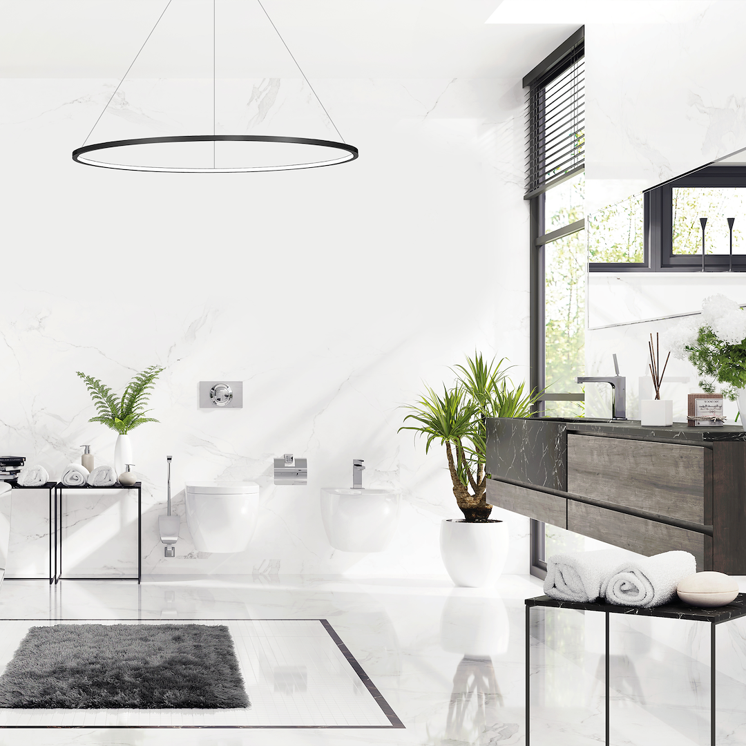 Lustra Saturno combina functionalitatea cu designul contemporan. Realizata din Black Aluminiu & Plastic. Este dotata cu sursa de lumina LED, putere de 65W LED, flux luminos de 3500lm, temperatura de culoare 4000K, asigurand o iluminare eficienta si placuta. Prezinta gradul de protectie IP44, fiind potrivita pentru utilizare interioara. Functioneaza la tensiune de 230V. Dimensiunile sale (latime de 1200mm, inaltime reglabila 500-1000mm) o fac perfect adaptata pentru spatii generoase precum holuri, sufragerii, sali de receptie, sali de sedintas. Unghiul de iluminare de 120° asigura o distributie corecta si uniforma a luminii in spatiu. O solutie de iluminat eleganta care va transforma atmosfera oricarui spatiu modern.