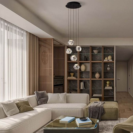 Lustra Nova Luce IFOS 9511012 Triac Dimmable Sandy Black& Chrome Metal & Clear Acrylic LED 25W 1301lm 3000K IP20