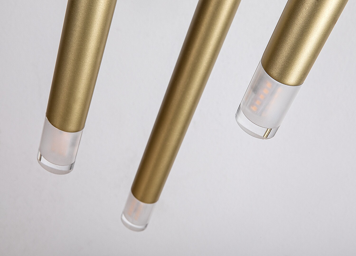 Lampa suspendată cu 3 becuri Rabalux Ramira este recomandată celor care caută o lampă suspendată minimalistă ce poate fi integrată în aproape orice încăpere din casa lor modernă. Lampa este realizată din metal aurit, cu abajururi transparente din acrilic și o bază decorativă mare, rotundă, de aceeași culoare cu capetele lămpii. Capetele lămpii au o formă tubulară, cilindrică și sunt suspendate la înălțimi diferite, ceea ce conferă lămpii suspendate un aspect interesant. Acest model este alegerea ideală pentru living, bucătărie, sufragerie sau dormitor. Poți să o instalezi deasupra mesei de dining sau chiar deasupra patului. Poate fi utilizată cu trei becuri, fiecare cu o putere de până la 5 W. Tipul de soclu este G9. Poți alege surse de lumină care emit lumină albă caldă sau naturală. Lampa suspendată este furnizată fără surse de lumină.