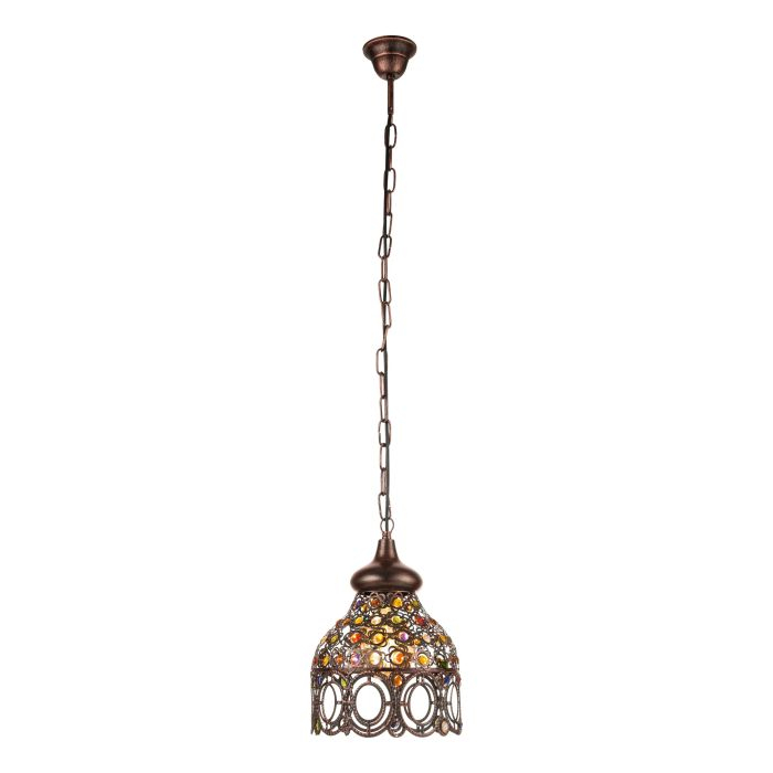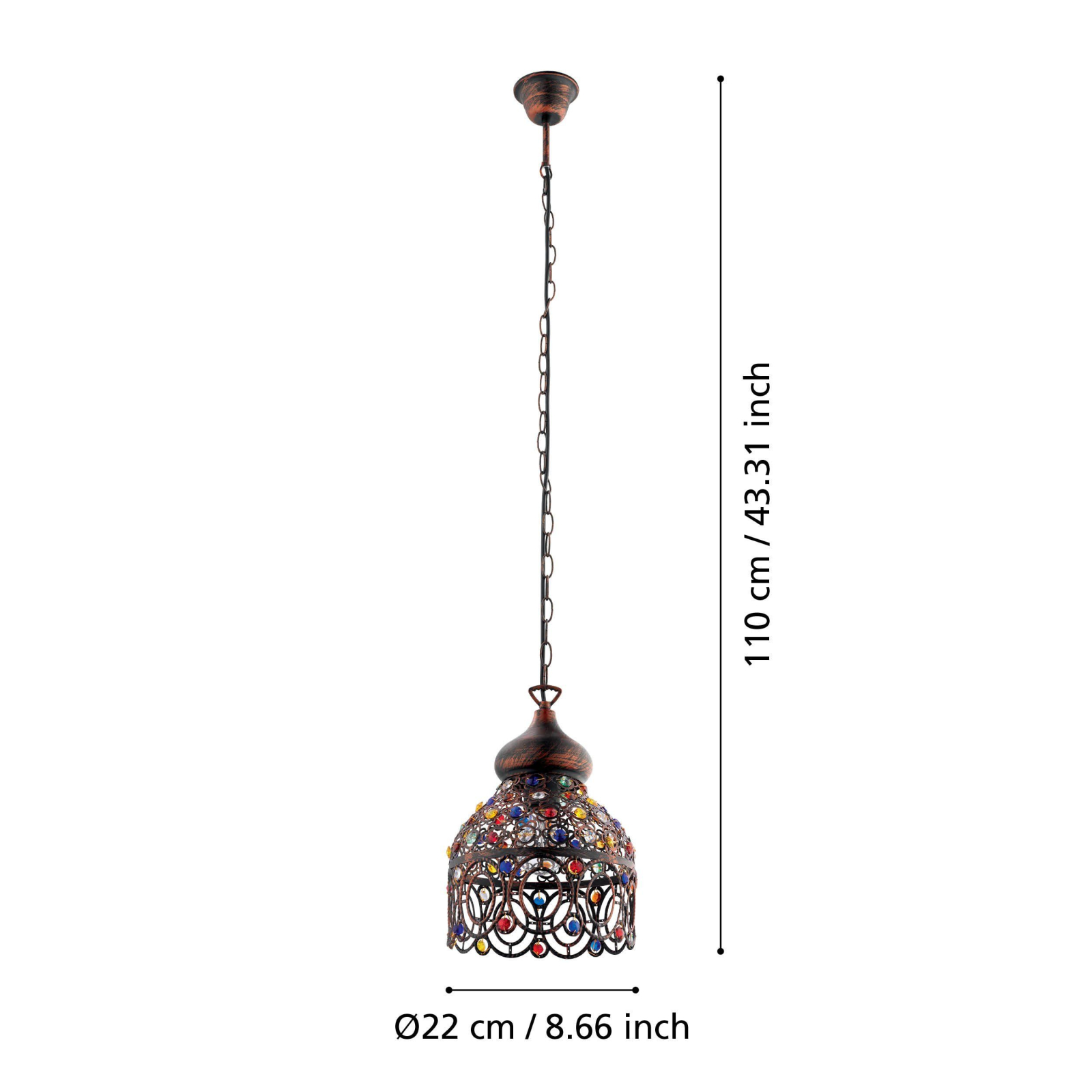 Pendul EGLO Jadida 49765 E27 1X60W 220-240V,50/60Hz H 1100mm x Ø220mm otel cupru antichizat sticla colorata IP20