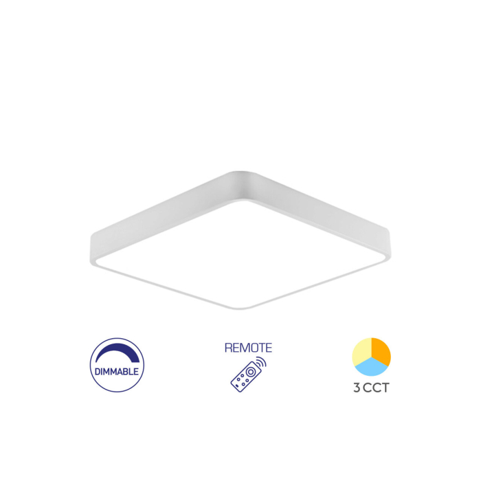 Plafoniera LED de 45W în variantă pătrată oferă un design modern și echilibrat, ideal pentru spații contemporane. Cu un flux luminos de 4650 lumeni și funcție 3-în-1 pentru selectarea temperaturii de culoare (3000K, 4000K sau 6500K), aceasta permite adaptarea iluminării în funcție de activitate și preferințe. Telecomanda inclusă asigură control facil al intensității și temperaturii de culoare, iar dimensiunea de 500x500 mm este potrivită pentru încăperi medii și mari.