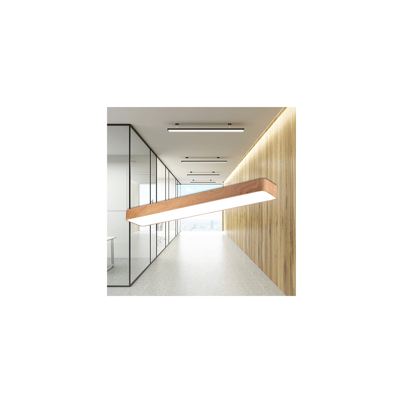 Plafoniera LED de 45W în variantă rectangulară cu finisaj tip lemn îmbină eleganța naturală cu eficiența iluminării moderne. Cu un flux luminos de 4650 lumeni și funcție 3-în-1 pentru selectarea temperaturii de culoare (3000K, 4000K sau 6500K), aceasta permite adaptarea atmosferei în funcție de activitate și momentul zilei. Forma alungită de 1200x200 mm este ideală pentru amplasare deasupra mesei, în bucătării, birouri sau zone open-space amenajate în stil scandinav sau natural.