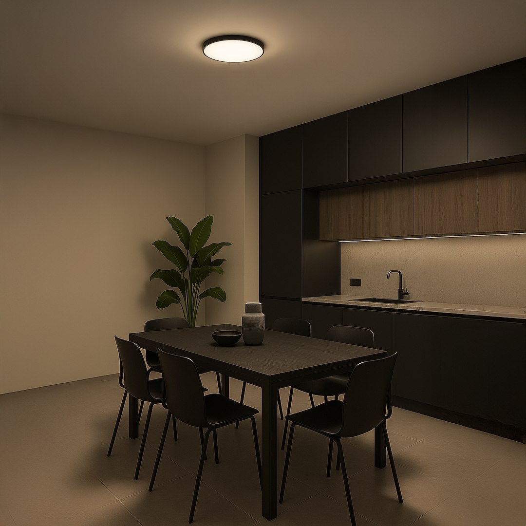 Plafonieră Slimi combina functionalitatea cu designul contemporan. Realizata din Black & White Polipropilena & Polistiren. Este dotata cu putere de 18W LED, flux luminos de 2300 lm, temperatura de culoare 4000K, asigurand o iluminare eficienta si placuta. Prezinta gradul de protectie IP40, fiind potrivita pentru utilizare interioara. Functioneaza la tensiune de 230V/50Hz. Dimensiunile sale (latime de 300 mm, inaltime de 55 mm) o fac perfect adaptata pentru spatii generoase precum holuri, sufragerii, sali de receptie, spatii moderne. Unghiul de iluminare de 120° asigura o distributie corecta si uniforma a luminii in spatiu. O solutie de iluminat eleganta care va transforma atmosfera oricarui spatiu modern.