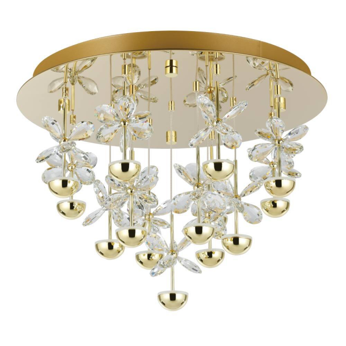 Plafonieră PIANOPOLI 3 LED 15X1.8W IP20 390308 3000K; 3600lm, Oțel Alamă, Sticlă cu efect de cristal Transparent