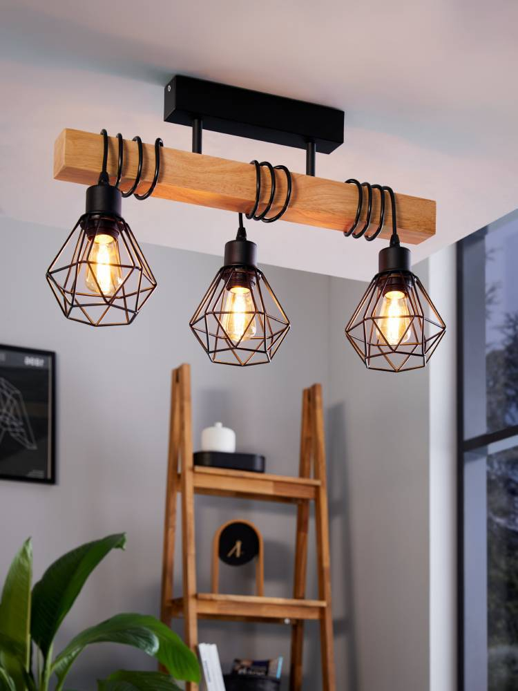 Plafoniera EGLO Townshend 5 44074 E27 3X60W 220-240V,50/60Hz L 550mm x l 200mm x H 360mm otel/lemn negru/maro IP20