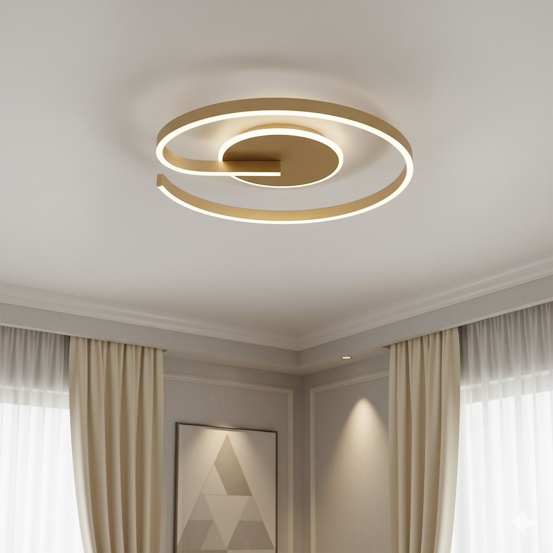Plafoniera Lorenzo combina functionalitatea cu designul contemporan. Realizata din Gold Metal. Este dotata cu sursa de lumina LED, putere de 22W LED, flux luminos de 1180 lm, temperatura de culoare 4000K, asigurand o iluminare eficienta si placuta. Prezinta gradul de protectie IP20, fiind potrivita pentru utilizare interioara. Functioneaza la tensiune de 230V. Dimensiunile sale (adancime de 500 mm, inaltime de 65mm) o fac perfect adaptata pentru spatii generoase precum holuri, sufragerii, sali de receptie, spatii moderne. Unghiul de iluminare de 120° asigura o distributie corecta si uniforma a luminii in spatiu. O solutie de iluminat eleganta care va transforma atmosfera oricarui spatiu modern.