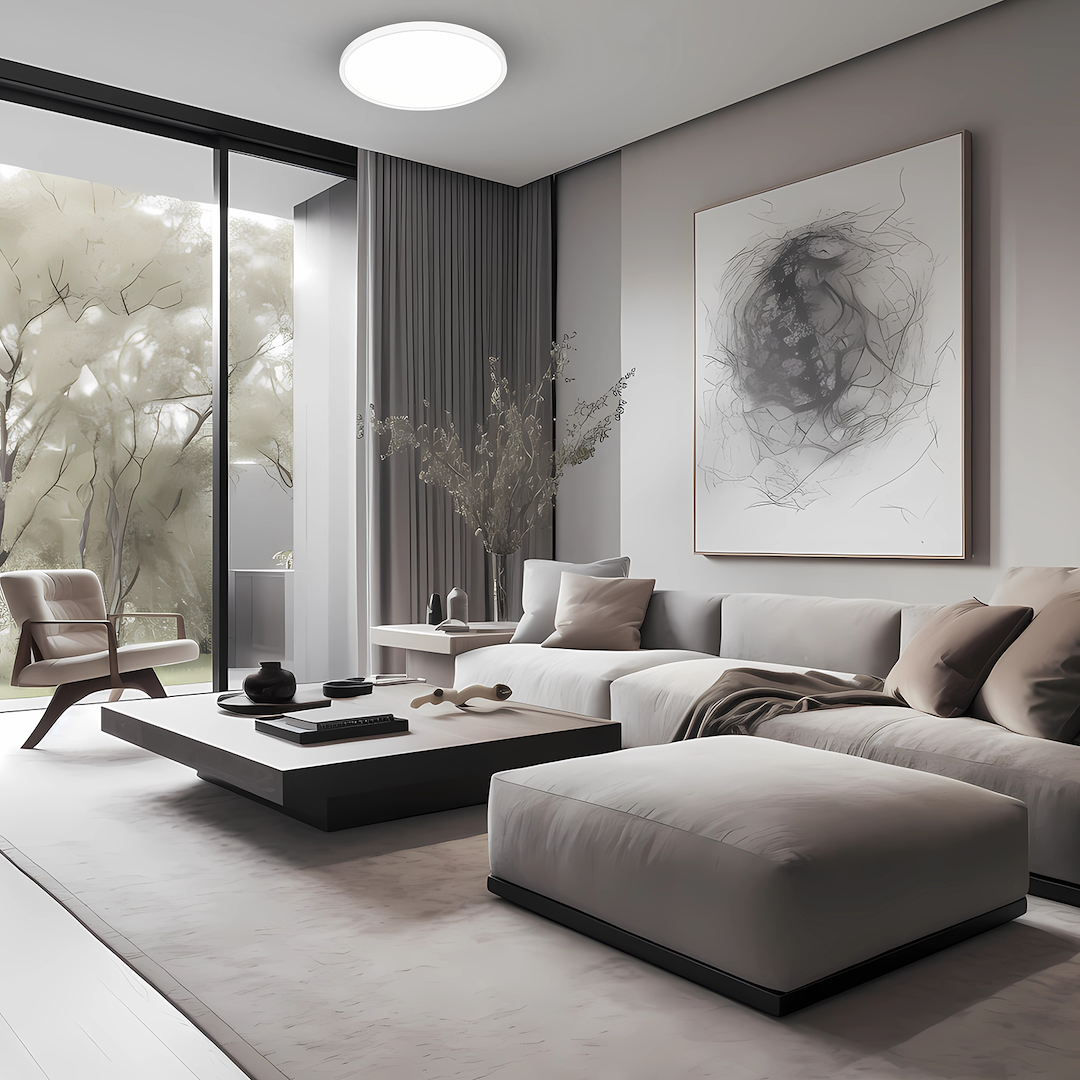 Plafoniera Maq combina functionalitatea cu designul contemporan. Realizata din White Plastic. Este dotata cu sursa de lumina LED, putere de 40W LED, flux luminos de 4300lm, temperatura de culoare 3000K/4000K/6500K, asigurand o iluminare eficienta si placuta. Prezinta gradul de protectie IP40, fiind potrivita pentru utilizare interioara. Functioneaza la tensiune de 230V. Dimensiunile sale (latime de 500mm, inaltime de 27mm) o fac perfect adaptata pentru spatii generoase precum holuri, sufragerii, sali de receptie, spatii moderne. Unghiul de iluminare de 120° asigura o distributie corecta si uniforma a luminii in spatiu. O solutie de iluminat eleganta care va transforma atmosfera oricarui spatiu modern.