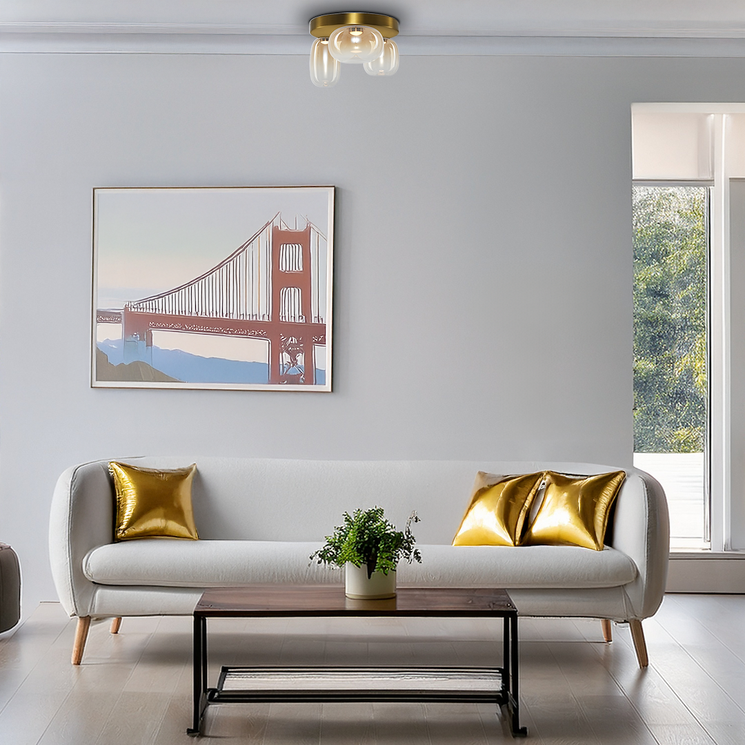 Plafoniera Vaso combina functionalitatea cu designul contemporan. Realizata din Gold & Amber Metal & Sticla. Este dotata cu sursa de lumina LED, putere de 12W LED, flux luminos de 1131lm, temperatura de culoare 3000K, asigurand o iluminare eficienta si placuta. Prezinta gradul de protectie IP20, fiind potrivita pentru utilizare interioara. Functioneaza la tensiune de 230V. Dimensiunile sale (latime de 420mm, inaltime de 240mm) o fac perfect adaptata pentru spatii generoase precum holuri, sufragerii, sali de receptie, spatii moderne. Unghiul de iluminare de 120° asigura o distributie corecta si uniforma a luminii in spatiu. O solutie de iluminat eleganta care va transforma atmosfera oricarui spatiu modern.