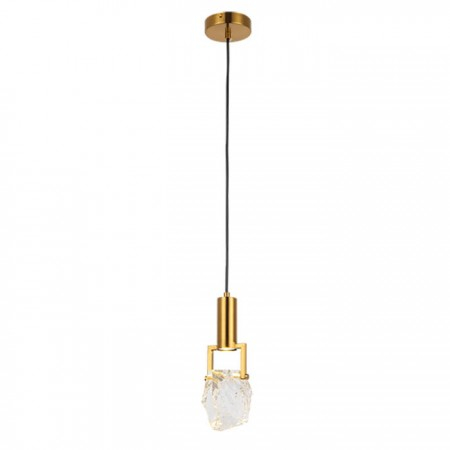 Suspensie clasica pentru interior, cu structura din metal finisat cupru si abajur din sticla transparenta lucrata manual.