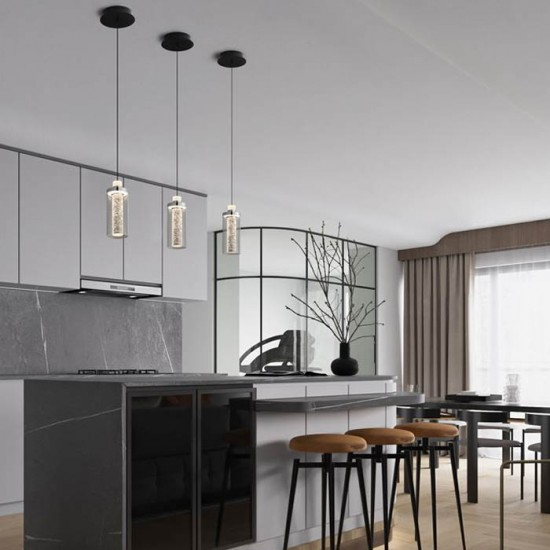 Suspensie Nova Luce Lune, negru, LED, 9W, 404 lumeni, alb cald 3000K, D.8 cm, 9520010