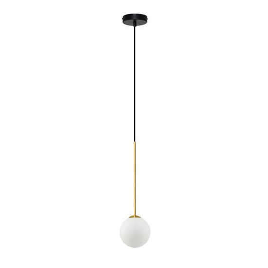 Material: Satin Gold & Matt Black Metal White Opal Glass Bulb Type: LED G9 1x5 Watt 220-240 Volt IP20 bulb excluded Product No: 9620157 Category: Suspension Dimensions: D: 11 H: 163 cm