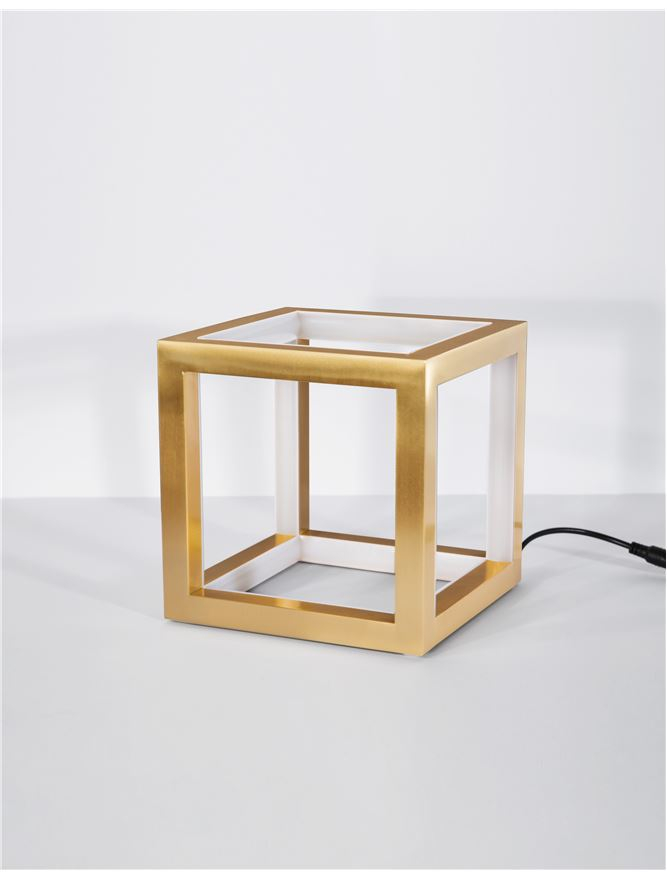 Parametri inaltime (mm): 160 latime (mm): 160 adancime (mm): 160 numar surse / tip baza: 1 x LED integrat putere maxima a sursei: 20 Tensiune: 230 V Sursa in set: LED 20 W, 1500 lm, 3000K culoare lampa: auriu si nuante aurii material: aluminiu/sticlaIP: 20 GABBIA Culoare aurie, LED reglabil integrat
