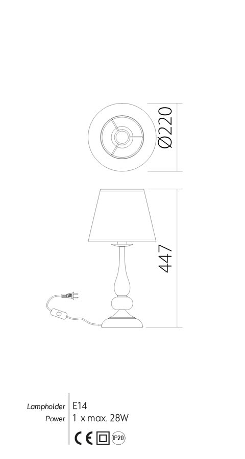 Incanti Veioza Incanti Elizee IEL T1 22 06 E14 1x28W Metal BLACK IP20