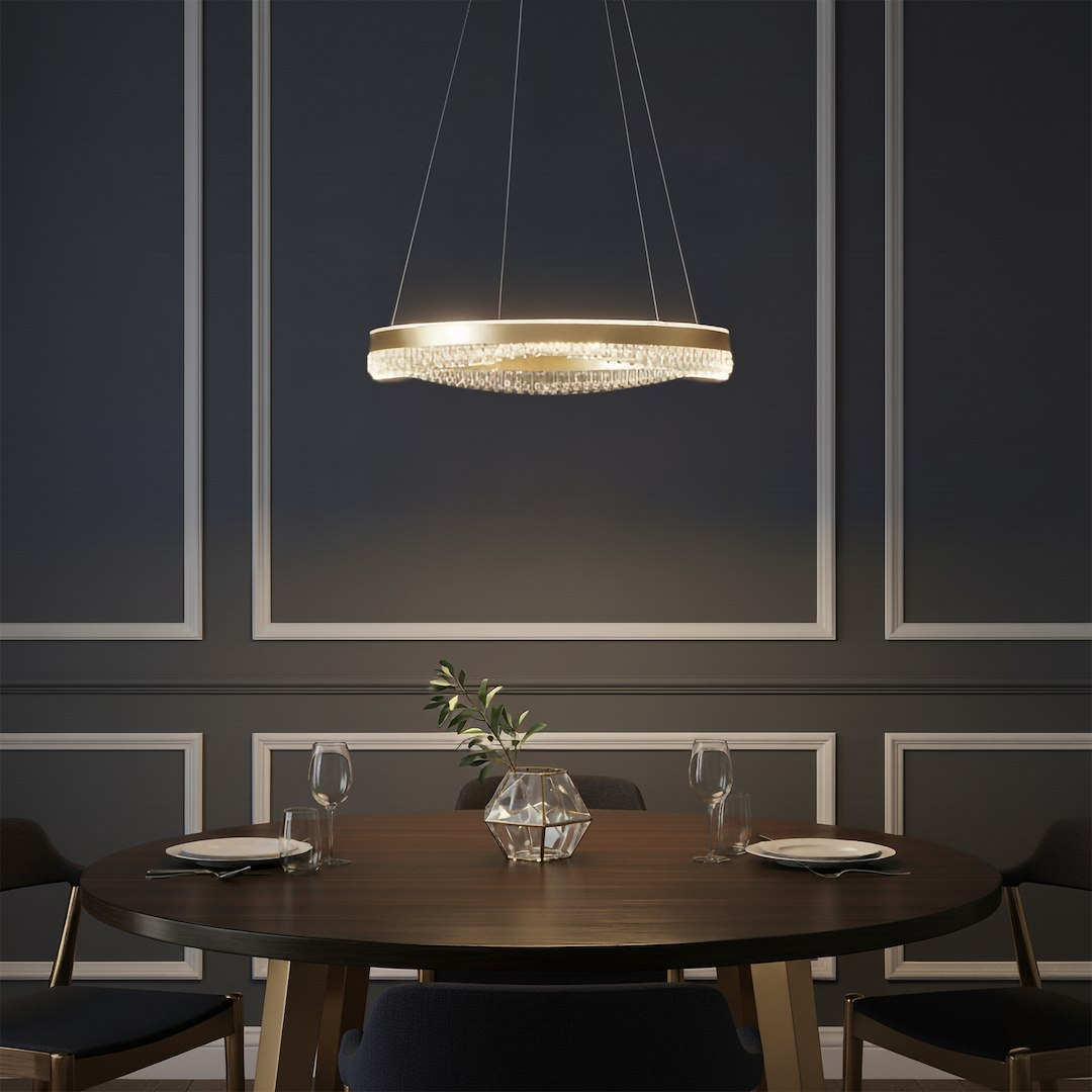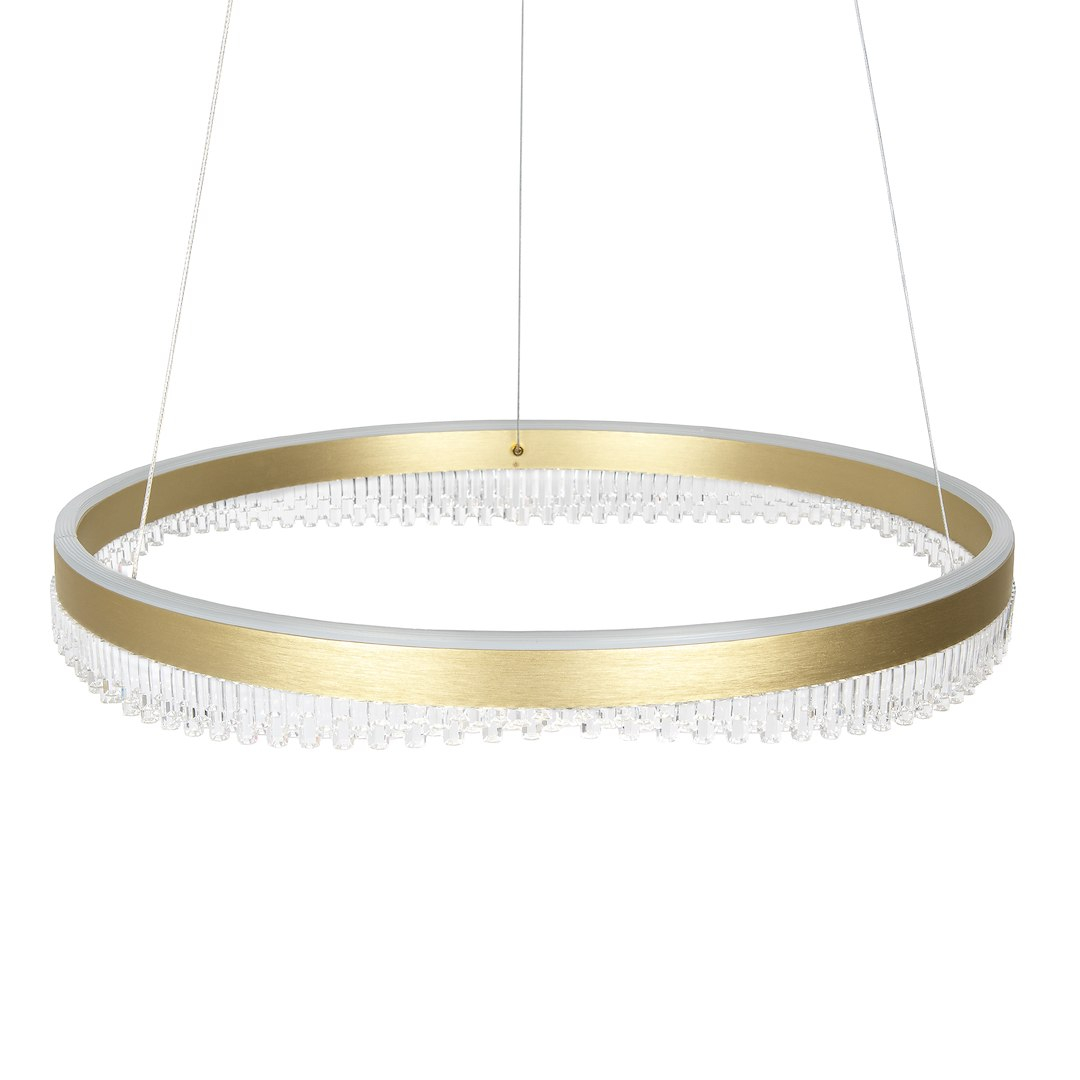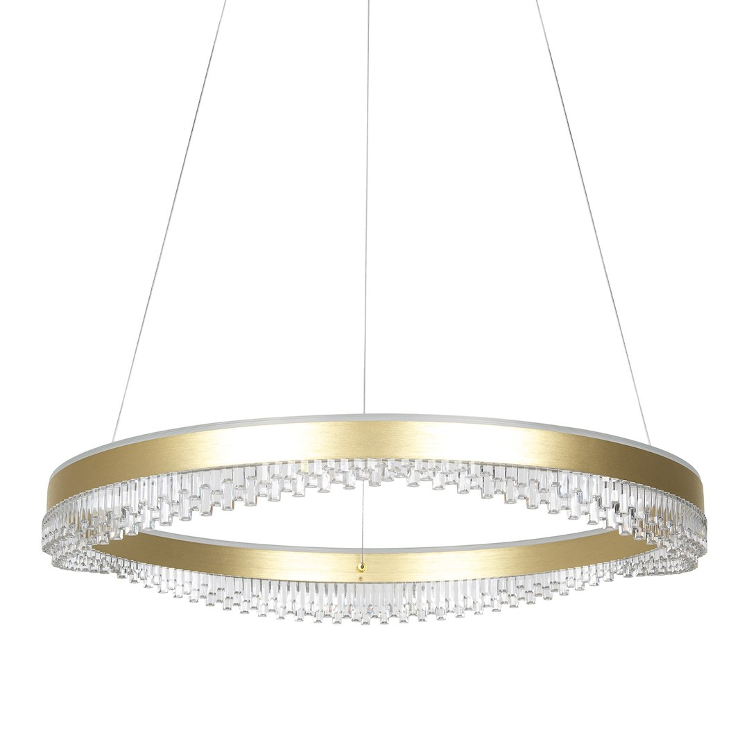 Lustra Preciosa combina functionalitatea cu designul contemporan. Realizata din Gold Metal & Acril. Este dotata cu sursa de lumina LED, putere de 52W LED, flux luminos de 3400lm, temperatura de culoare 4000K, asigurand o iluminare eficienta si placuta. Prezinta gradul de protectie IP20, fiind potrivita pentru utilizare interioara. Functioneaza la tensiune de 230V. Dimensiunile sale (latime de 600mm, inaltime reglabila 250-1000mm) o fac perfect adaptata pentru spatii generoase precum holuri, sufragerii, sali de receptie, sali de sedintas. O solutie de iluminat eleganta care va transforma atmosfera oricarui spatiu modern.