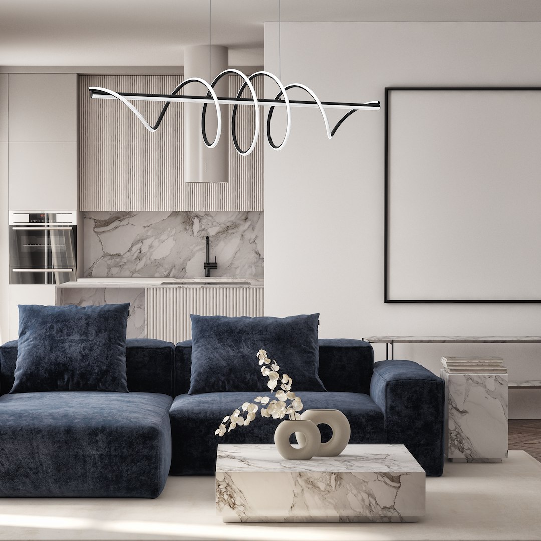 Lustra Twist combina functionalitatea cu designul contemporan. Realizata din Black Aluminiu & Plastic. Este dotata cu sursa de lumina LED, putere de 90W LED, flux luminos de 3600lm, temperatura de culoare 4000K, asigurand o iluminare eficienta si placuta. Prezinta gradul de protectie IP20, fiind potrivita pentru utilizare interioara. Functioneaza la tensiune de 230V. Dimensiunile sale (latime de 1110mm, adancime de 310mm, inaltime reglabila 500-1000mm) o fac perfect adaptata pentru spatii generoase precum holuri, sufragerii, sali de receptie, sali de sedintas. O solutie de iluminat eleganta care va transforma atmosfera oricarui spatiu modern.