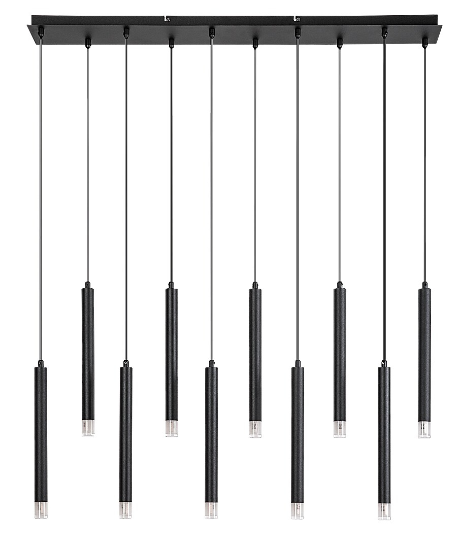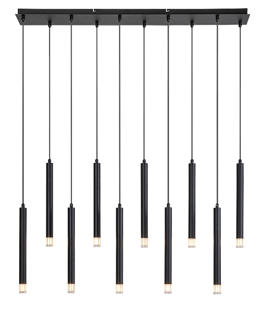 Lampa suspendată cu 10 becuri Rabalux Ramira este recomandată în primul rând celor care caută o lampă suspendată în stil minimalist, dar cu dimensiuni impresionante și intensitate luminoasă mare. Lampa este realizată din metal de culoare neagră elegantă și este completată de abajururi transparente din acrilic și o bază decorativă lungă, pătrată, de aceeași culoare cu capetele lămpii. Capetele lămpii cu diametru mic sunt realizate într-o formă tubulară, cilindrică și sunt aranjate într-un rând, una lângă alta. Capetele lămpii sunt suspendate la înălțimi variabile, ceea ce conferă acestui model un aspect unic. Lampa suspendată este ideală nu doar pentru living, ci și pentru bucătărie, sufragerie sau dormitor. Poate fi utilizată cu zece becuri, fiecare cu o putere de până la 5 W. Tipul de soclu este G9. Lampa este furnizată fără surse de lumină.