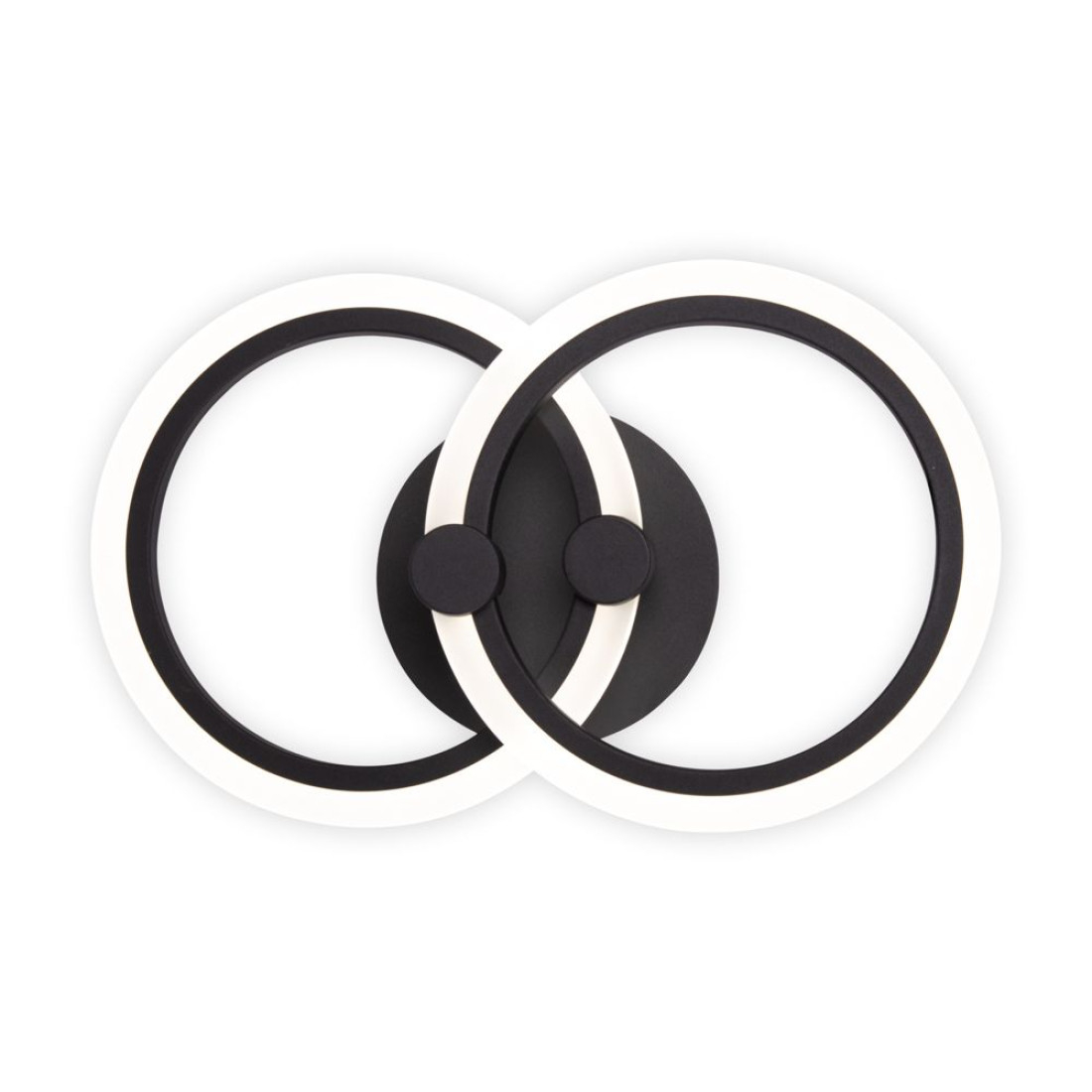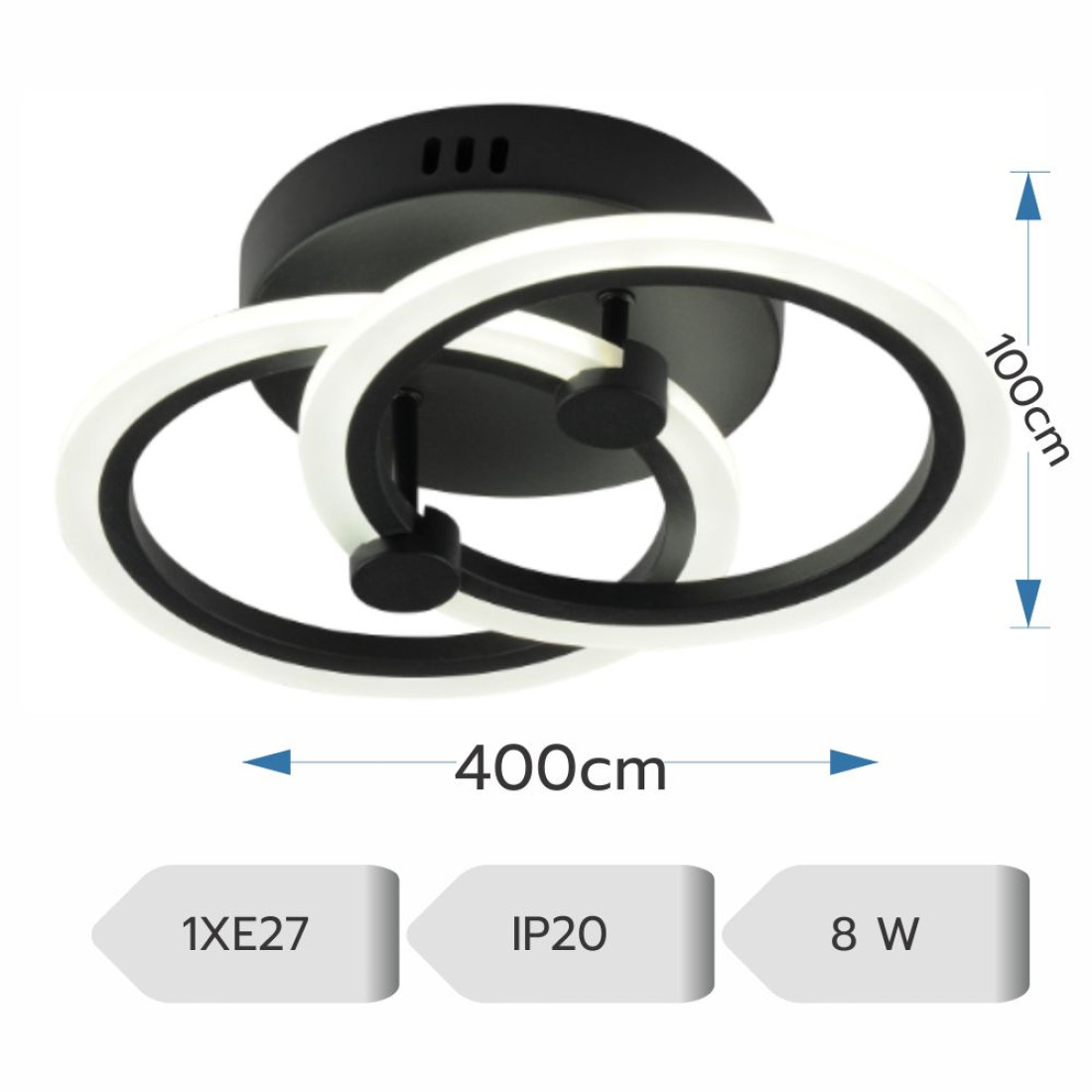 Această lustră LED cu design modern, formată din două cercuri suprapuse în contrast alb-negru, reprezintă o soluție de iluminat minimalistă și extrem de versatilă.