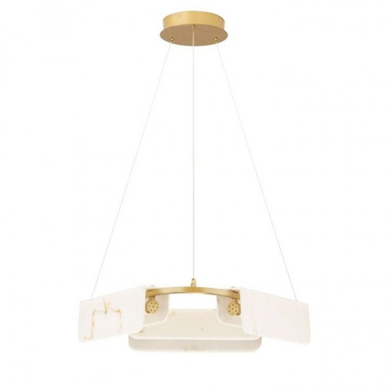 Lustra moderna pentru interior, cu structură din metal și aluminiu finisata alama si dispersoare din metacrilat aspect marmura