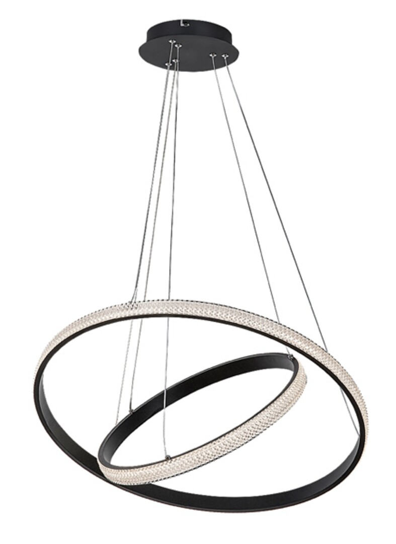 Pandantivul dublu, modern și reglabil Grete poate fi o piesă remarcabilă și elegantă pentru aranjamentul camerei de zi, a sufrageriei sau dormitorului Dvs. Modelul de culoare neagră realizată din metal este completată de abajururi acrilice albe și poate fi fixată pe tavan cu ajutorul unei baze decorative rotunde mici. Lampa este formată din două elemente orizontale în formă de inel de diametre diferite, dintre care cel mic atârnă sub cel cu diametru mai mare. Elementele lămpii sunt conectate la baza decorativă prin cabluri de susținere subțiri. Grete are o sursă de lumină LED încorporată aparținând clasei energetice G, cu o putere de 60W, o luminozitate de 3450 de lumeni cu abajur, 7150 de lumeni fără abajur, și cu o durată de viață de 20 000 ore. Sursa de lumină cu o temperatură de culoare de 3000 K emite lumină albă caldă, care creează o atmosferă intimă și primitoare. Datorită luminozității sale ridicate, lampa Gretel poate ilumina în mod eficient chiar și o încăpere mai mare. Pandantivul are următoarele dimensiuni: diametru 600 mm, un interval de suspendare reglabil între 400-1500 mm, diametru de instalare de 170 mm.