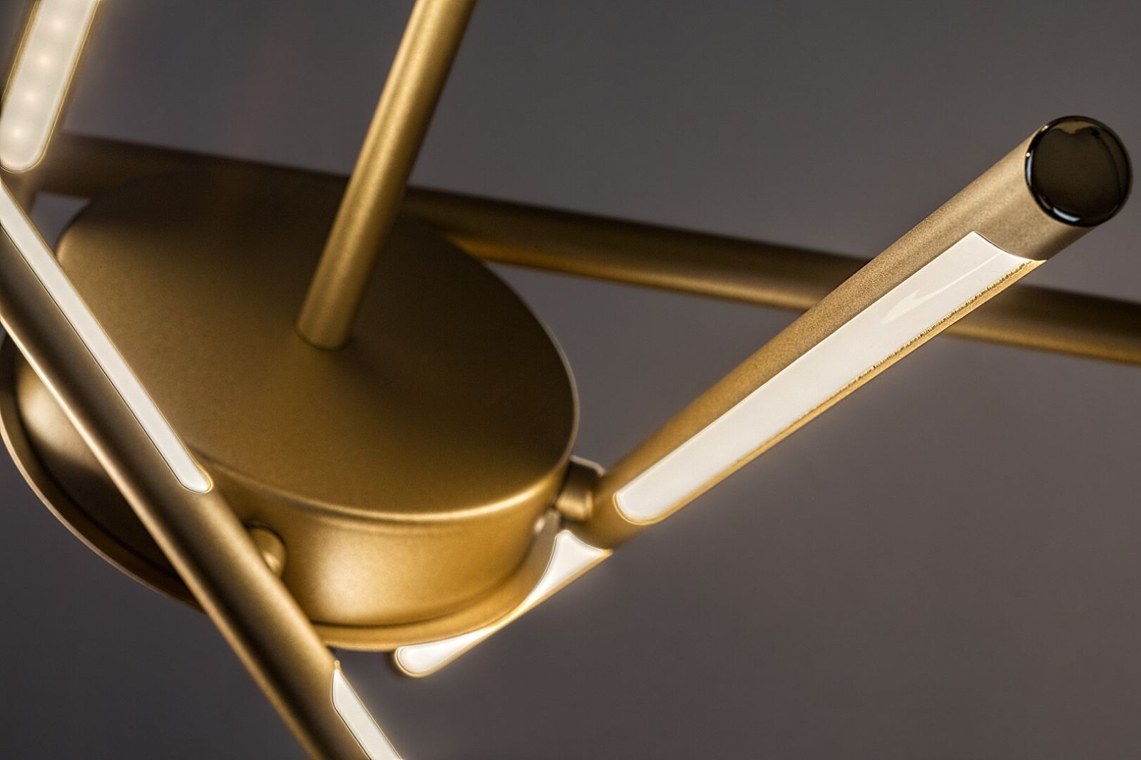 Lampa de tavan Rabalux Henli 2 este recomandată celor care consideră că designul modern și creativ, precum și funcționalitatea, sunt importante. Acest model neobișnuit este realizat cu un corp metalic de culoare aurie și un abajur din plastic alb și poate fi fixat de tavan cu ajutorul unei baze decorative rotunde. Corpul lămpii este alcătuit din elemente lungi, asemănătoare unor bețe, aranjate aparent aleatoriu, care se intersectează în mai multe puncte. Distanța lămpii suspendate față de tavan poate fi ajustată în funcție de necesități. Dispune de o sursă de lumină LED încorporată care emite o lumină albă caldă și este ideală pentru iluminarea unor spații mari datorită intensității sale luminoase. Este alegerea ideală nu doar pentru living și dormitor, ci și pentru sufragerie și bucătărie. Datorită tehnologiei LED, se caracterizează printr-o funcționare eficientă din punct de vedere energetic și o durată lungă de viață.
