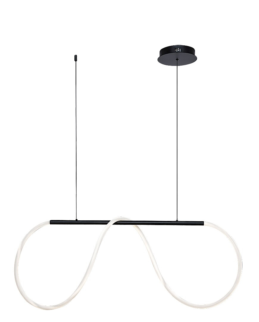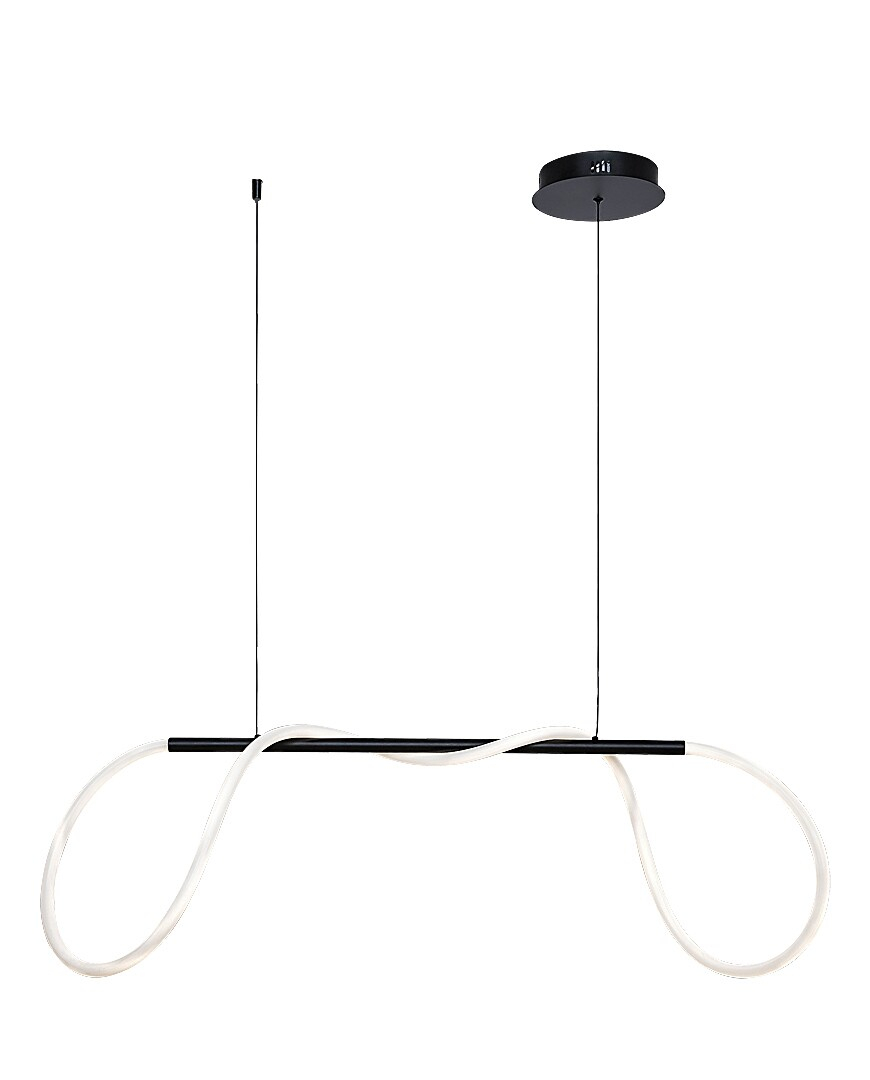 Pandantivul Montema, cu aspectul său unic și luminozitatea sa ridicată, în stil modern, poate fi o alegere excelentă pentru camera de zi, sufragerie sau dormitor. Acest model este recomandat în primul rând celor cărora le plac lămpile cu un design surprinzător și creativ. Montema, realizat din metal, în culoare neagră cu un abajur din silicon alb, este format dintr-o tijă orizontală suspendată de cablurile de susținere și un element de lampă luminoasă care se înfășoară de-a lungul acesteia. Pandantivul poate fi fixat pe tavan cu ajutorul unei baze decorative rotunde mici și are încorporată o sursă de lumină LED aparținând clasei energetice F. Aceasta are o putere de 40 W, o luminozitate de 3750 lumeni cu abajur, 4000 lumeni fără abajur și o durată de viață de 20.000 ore. Sursa de lumină cu temperatura de culoare de 4000 K emite o lumină albă naturală, care generează un efect modern și curat, fiind astfel ideală pentru încăperile aglomerate ale casei Dvs. Dimensiunile lămpii Montema sunt următoarele: lățime 1020 mm, suspendare 1200 mm, diametru de instalare 160 mm.