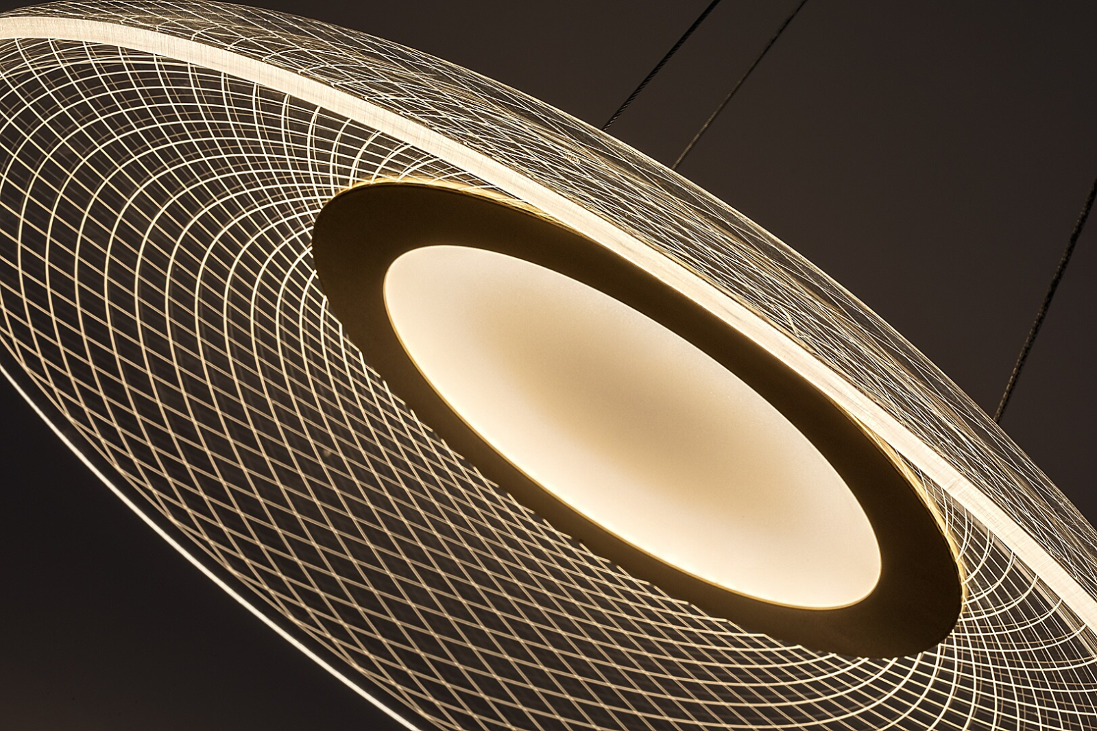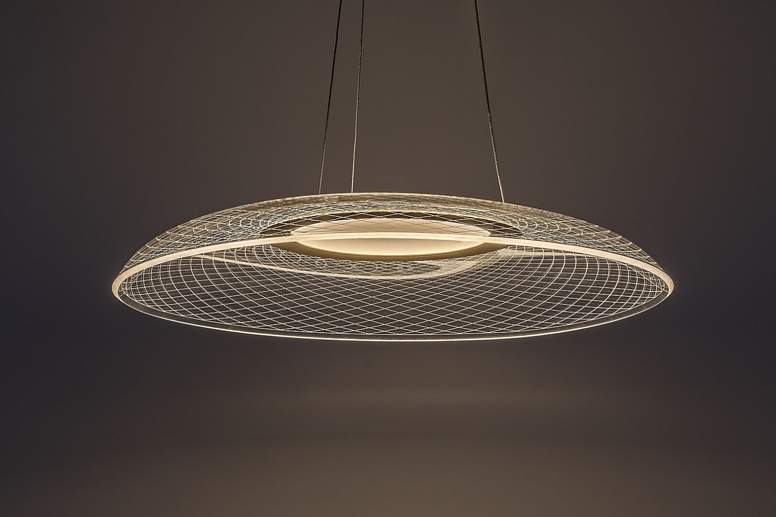 Lampa suspendată Rabalux Zofrael este recomandată celor care caută o lampă suspendată sofisticată, cu un aspect unic. Acest model special este realizat cu un suport din metal de culoare aurie și un abajur din acril transparent. Abajurul este larg dispersat, cu o ușoară curbură descendentă la margine. Suprafața sa este distinctă printr-un frumos model gravat, care devine vizibil atunci când lampa este aprinsă. Lampa suspendată poate fi montată pe tavan folosind o bază decorativă rotundă de culoare aurie și cabluri metalice de culoare argintie. Cablurile sunt susținute împreună de un inel estetic de culoare aurie, situat deasupra abajurului. Lampa suspendată dispune de o sursă de lumină LED încorporată care asigură o funcționare eficientă energetic și o durată lungă de viață. Lampa radiază o lumină albă caldă. Este ideală pentru living, dining sau dormitor.