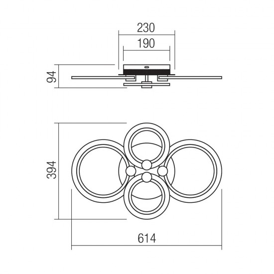 Lustra moderna pentru interior, dimabila, cu structură din metal vopsit alb mat si dispersoare din acril satinat.Echipată cu LED-uri SMD 54W, cu temperatură de culoare reglabilă din telecomandă între 3000K - 4500K - 6500K.Total flux luminos 4081 lumeni.Telecomanda este inclusă si are urmatoarele functii:on/offreglarea intensitatii luminoaseschimbarea temperaturii de culoare a luminii cald-neutru-recetimermod lumina veghe