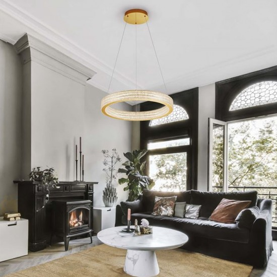 Suspensie Nova Luce Kinara, auriu, LED, 71W, 5286 lumeni, alb cald 3000K, D.41 cm, 9019742