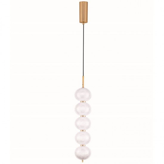 Material: Triac Dimmable Brass Gold Metal & Clear Acrylic Bulb Type: LED 30 Watt 220-240 Volt 2482Lm 3000K IP20 Product No: 9236393 Category: Suspension Dimensions: D: 15 H: 150 cm