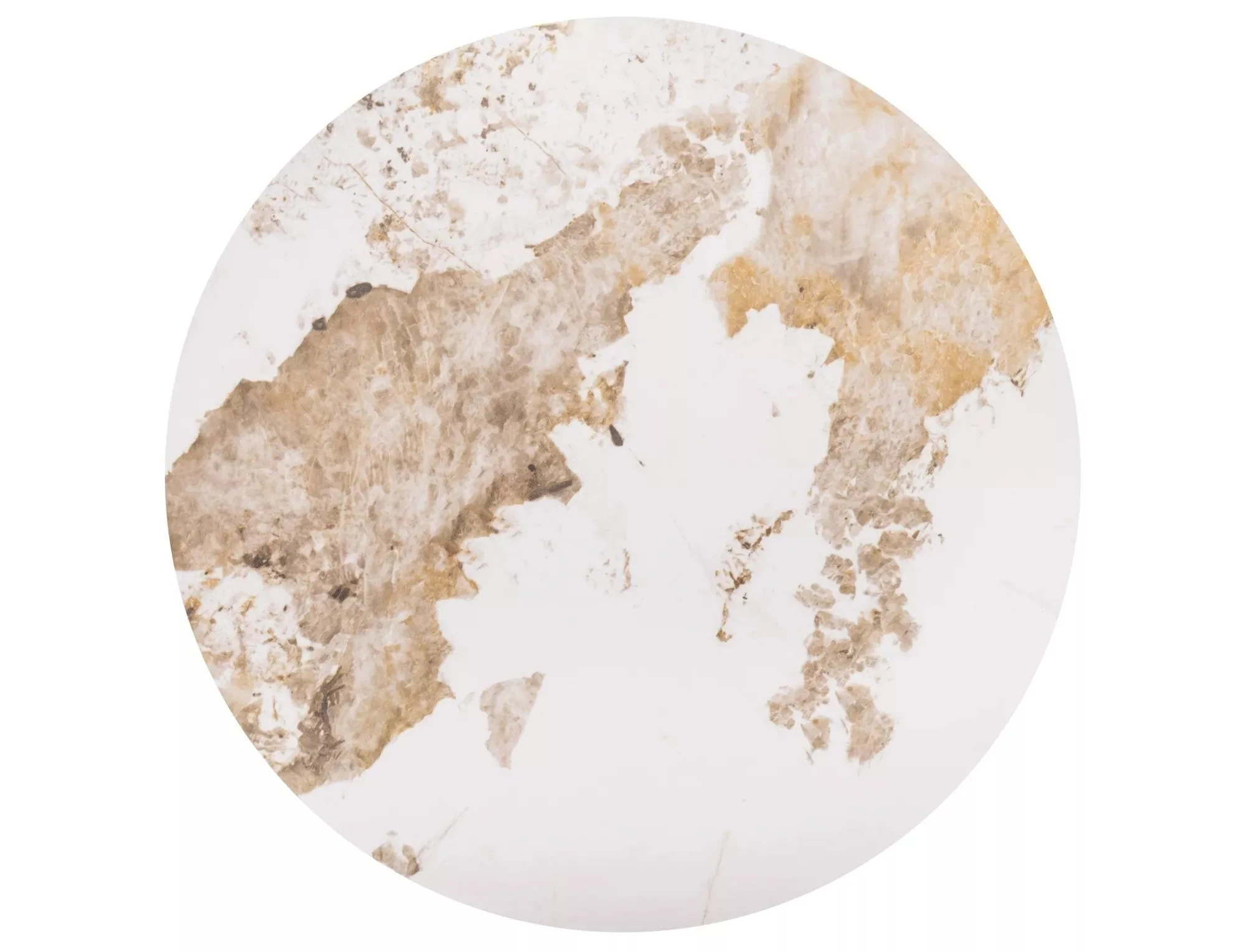 Masuta cafea OLAS B, alb cu efect de marmura, ceramica/metal, 50x49 cm