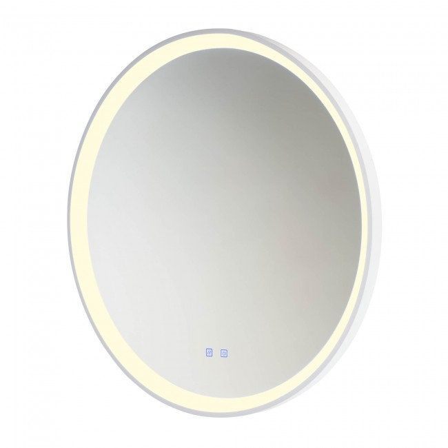 Oglindă cu lumină pentru interior, protejată la umiditate, echipată cu LED-uri SMD, întrerupător touch și dimmer, posibilitate de selectare a temperaturii de culoare a luminii de la alb cald la alb rece și funcție de dezaburire. Structură din aluminiu și metal vopsită alb mat, dispersor din acril alb opal și oglindă.
